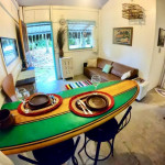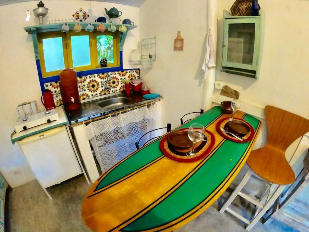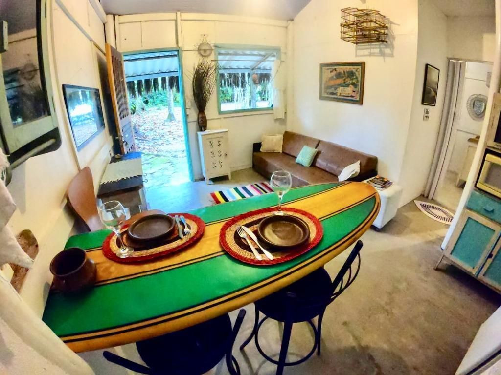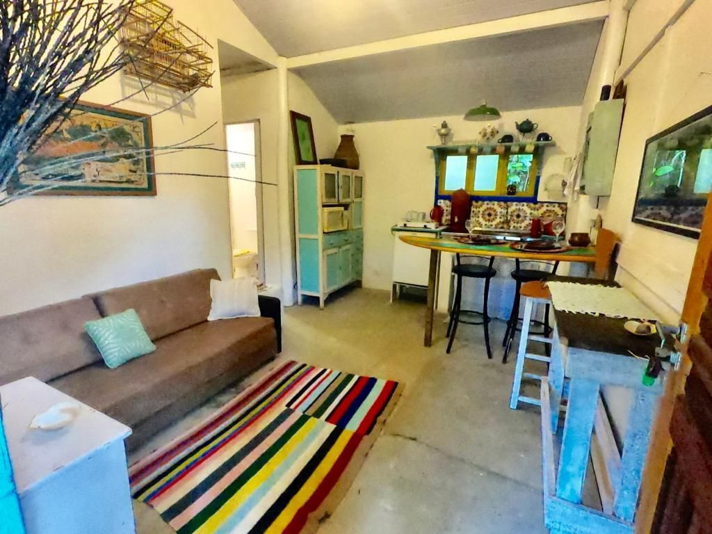 Espaço pequeno e aconchegante composto por um quarto, sala cozinha, banheiro e varanda. A casa está localizada em um grande terreno, permitindo o contato com muito verde e mata nativa, ao mesmo tempo que dá acesso à praia a menos de 50 metros. A casa é bem equipada com ar condicionado e uma linha completa de eletrodomésticos e utensílios
