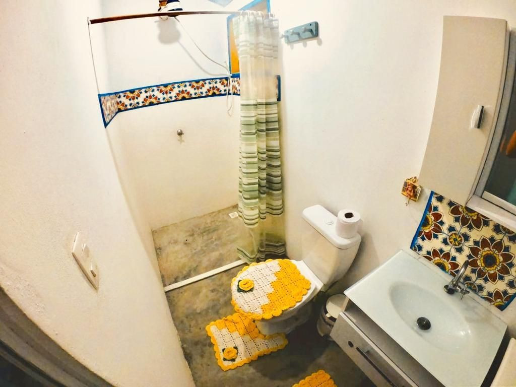 Nesse mesmo terreno reside o caseiro, proporcionando segurança e suporte aos hóspedes quando necessário. Equipamentos disponíveis no local: Ar condicionado, ventilador móvel , wi-fi, garagem no local, ducha externa. Equipado com geladeira de duas portas (freezer e refrigerador), fogão com forno, torradeira, liquidificador, panelas, pratos, talheres, etc. Churrasqueira portátil, 2 cadeiras de praia, 1 guarda-sol, um varal de chão, varanda mobiliada para descanso, bem como mesa e cadeira plásticos para home office.