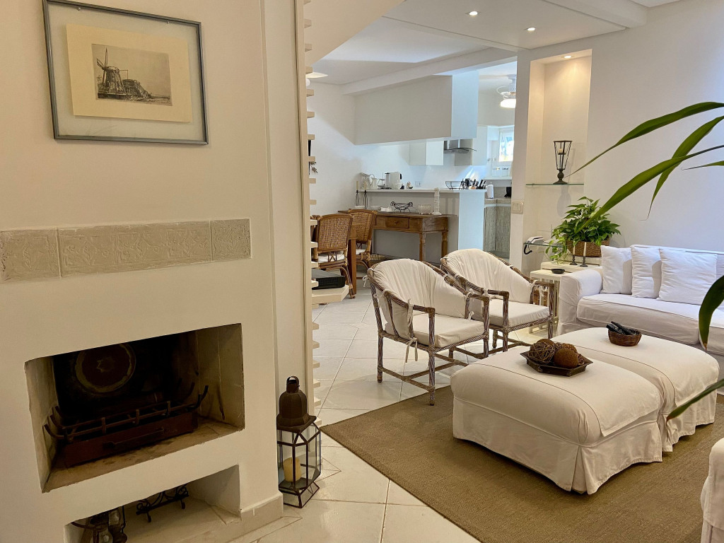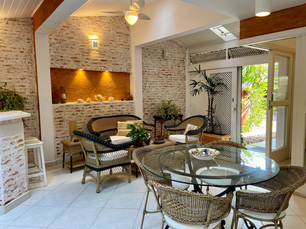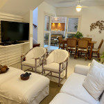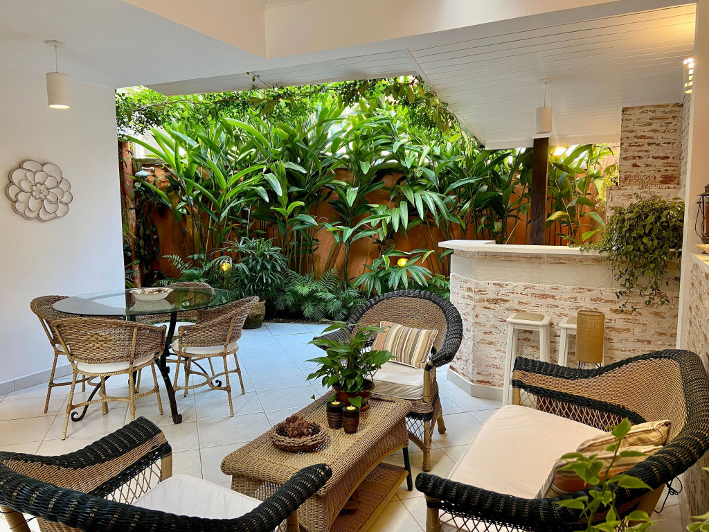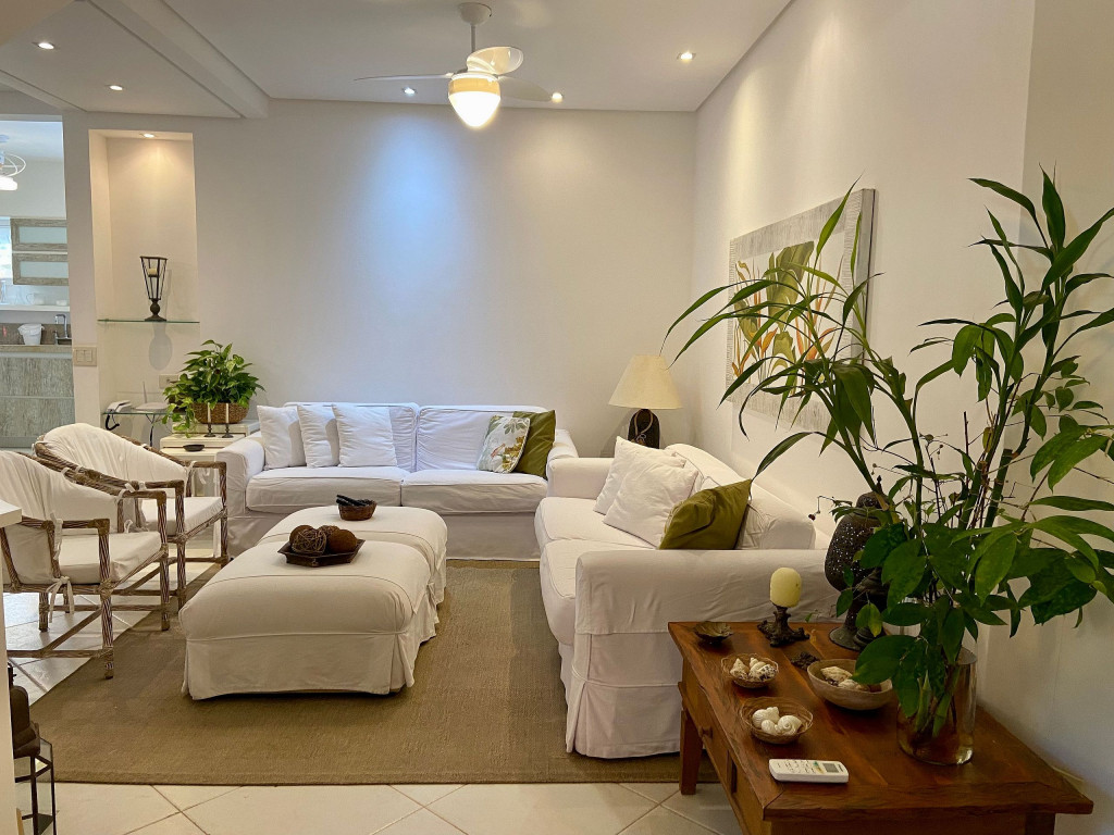Casa muito bem decorada e equipada, com 4 suítes sendo uma térrea e três no pavimento superior. Fica no canto direito de Juquehy, ao lado do restaurante Badauê. O condomínio oferece quadra de tênis, uma piscina com deck e vista para o mar. O grande diferencial é o apoio de praia, localizado em uma área pé na areia privativa do condomínio, com cadeiras, tendas, parquinho para crianças, churrasqueira e banheiros.A distância da casa até a areia é de 100 metros.