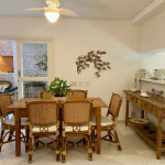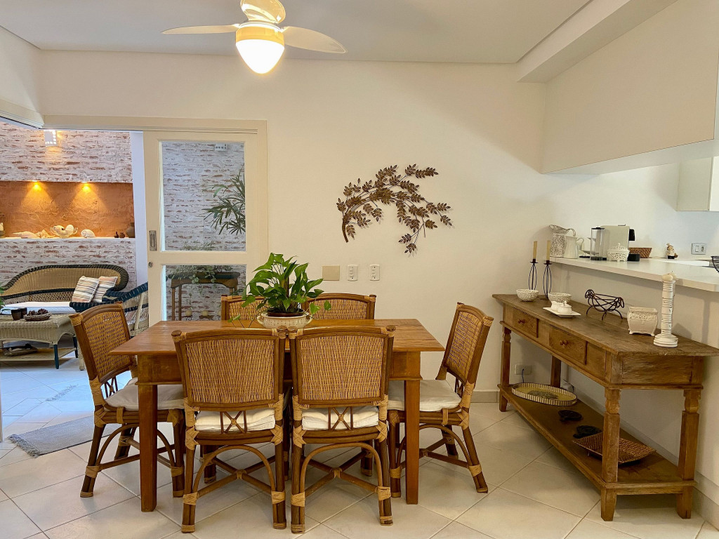 Sala de Jantar: ventilador de teto, mesa de 6 lugares e aparador.