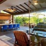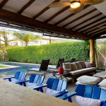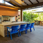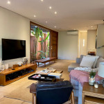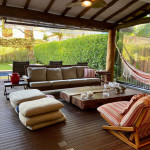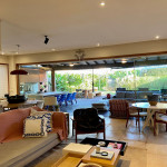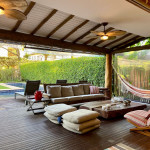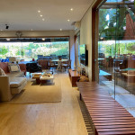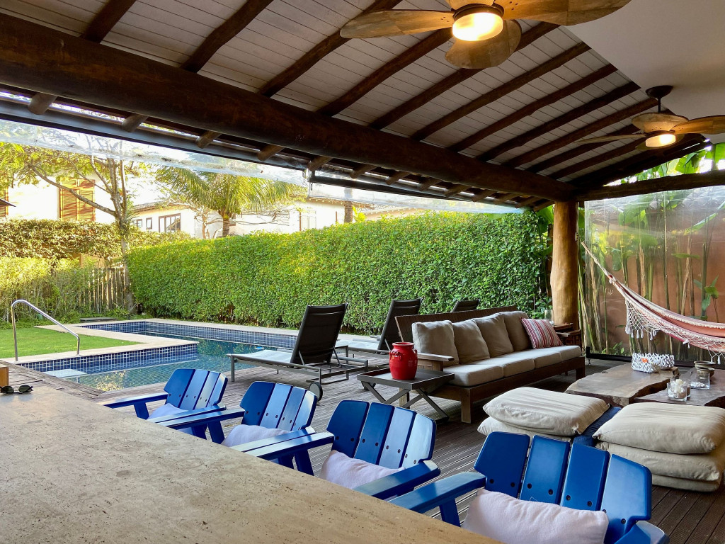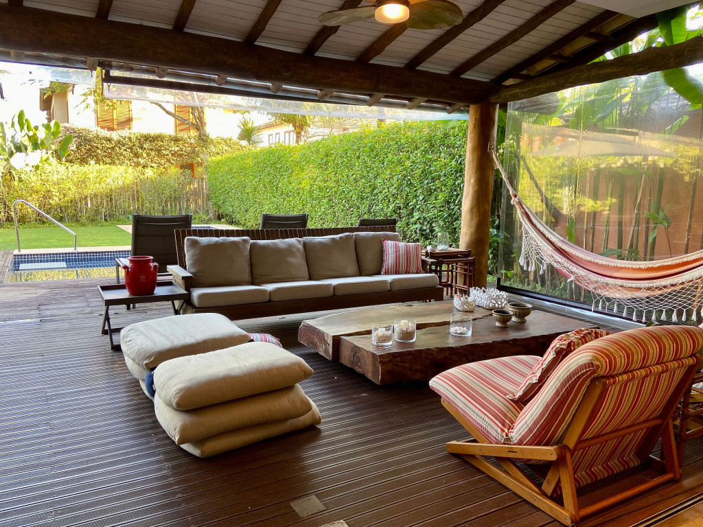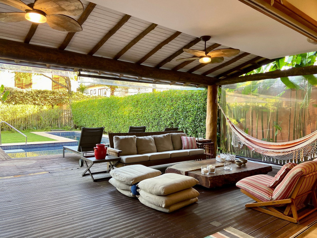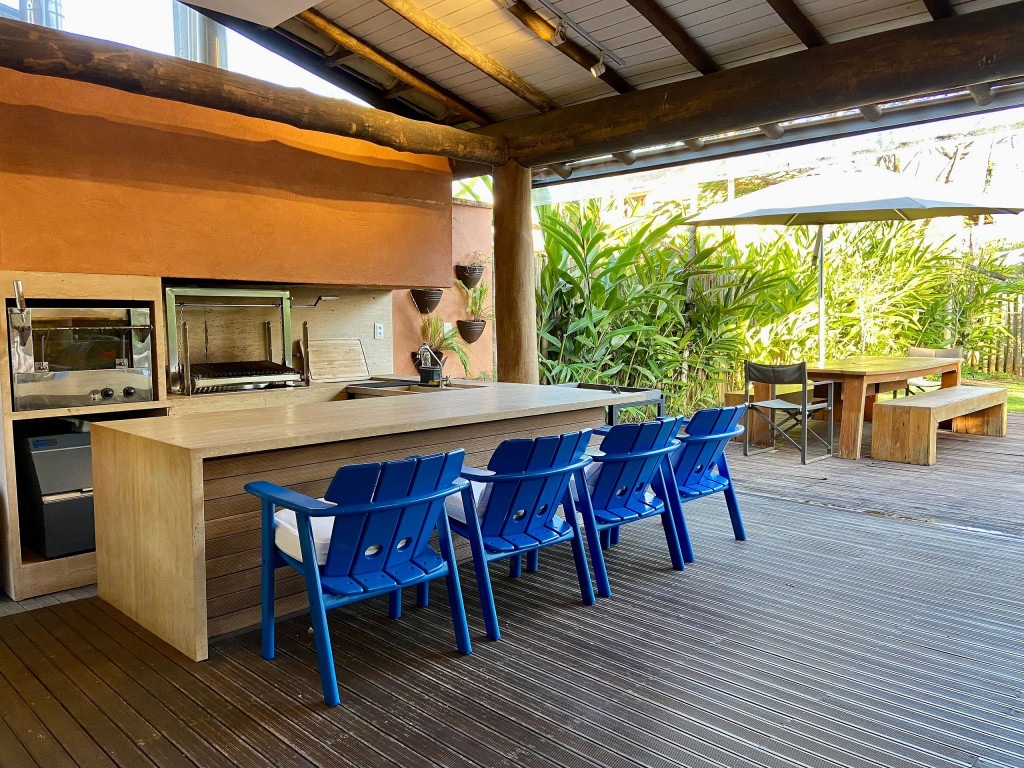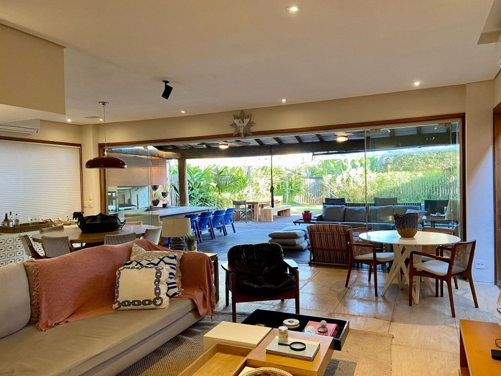 Casa ampla e espaçosa em condomínio pé na areia na Barra do Una, com 4 suítes e quintal e piscina privativa. O pavimento térreo tem a sala, cozinha, varanda e churrasqueira todos integrados, criando uma ampla área de convívio e lazer, de frente para o quintal com a piscina privativa. A casa é finamente decorada e equipada, com todos os utensílios de cozinha e eletrodomésticos.