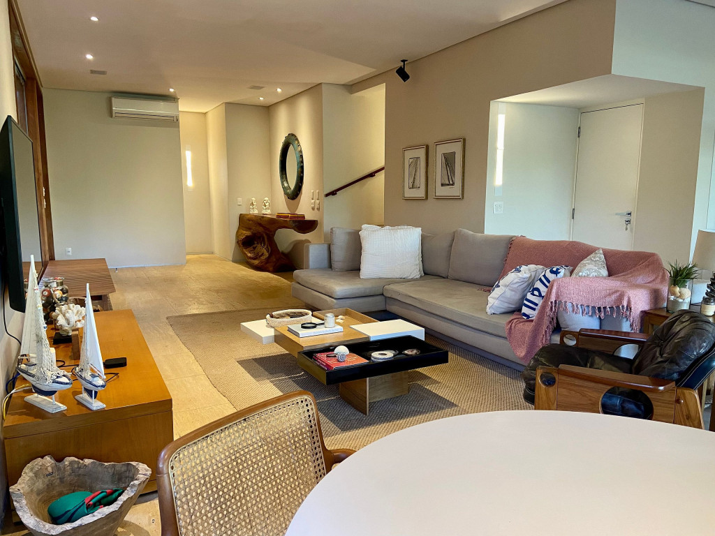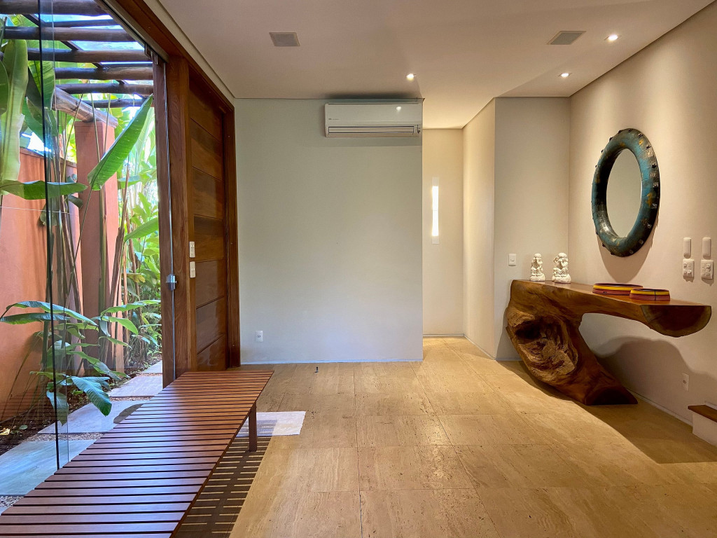A casa acomoda 10 pessoas, com 4 quartos, sendo 2 suítes, uma delas com entrada privativa. Todos os quartos possuem ar condicionado.
