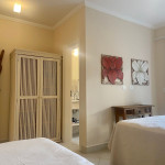 Cozinha: possui fogão, coifa, microondas e geladeira side by side. Além disso, é bem equipada com talheres, copos e utensílios em geral.Sala: smartTV, home theater, choppeira e cafeteira nespresso.Suítes: todas com ar condicionado, armários e duas possuem smartTV.Recomendamos a contratação da empregada para trabalhar diariamente durante a estadia. Ela cuida da limpeza, arrumação e também do preparo de refeições. É um serviço cobrado à parte, no mesmo valor da taxa de limpeza.
