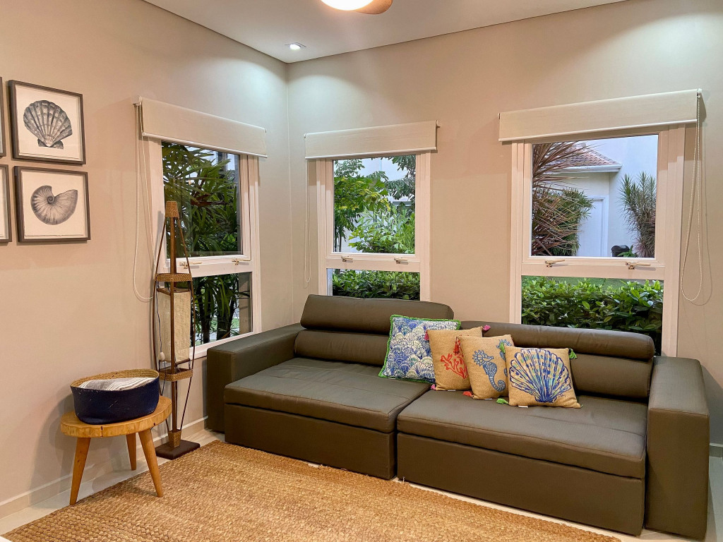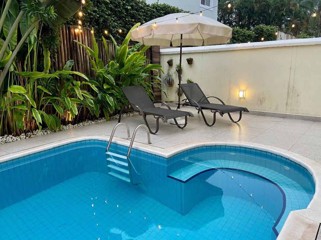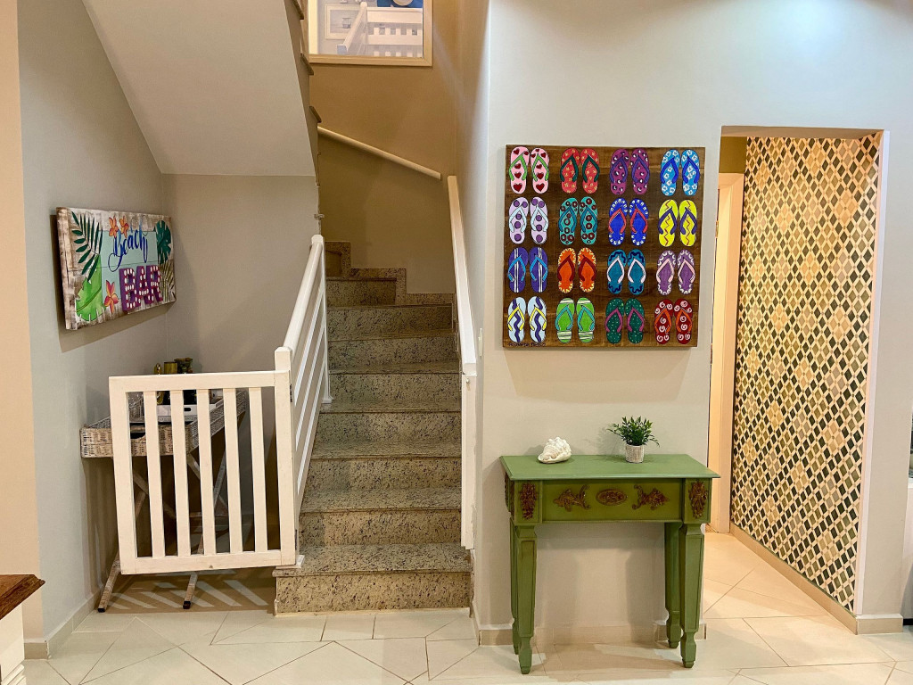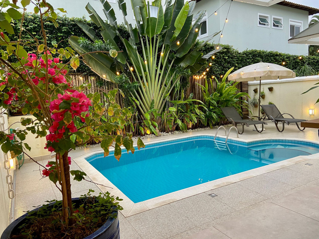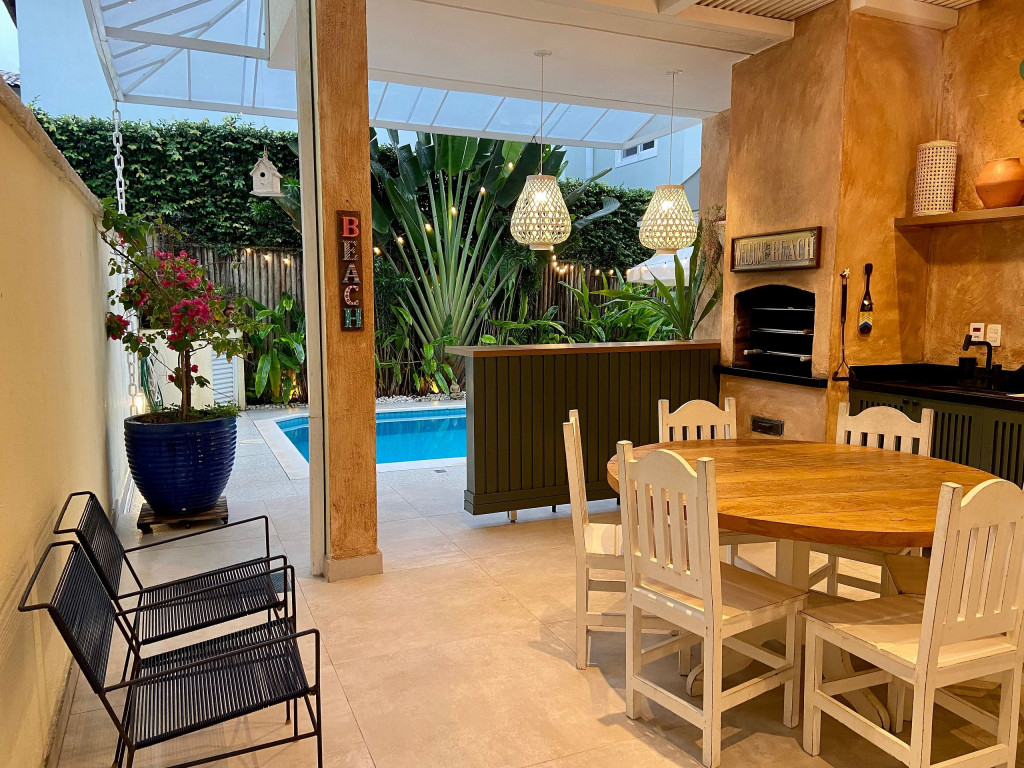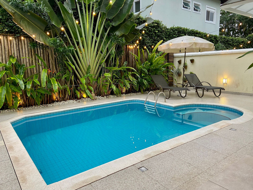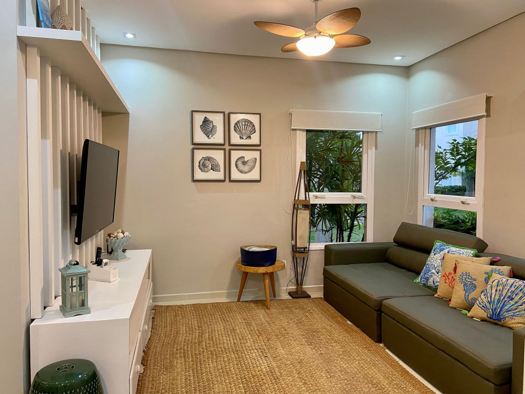 Casa de condomínio com piscina privativa a 50m da praia no canto esquerdo de Juquehy. O condomínio oferece apoio de praia com tenda e cadeiras montadas na praia.Nó térreo a casa possui uma sala de estar, TV e jantar integradas, dando acesso para a área externa com piscina, ducha e churrasqueira, criando um grande espaço de convívio familiar.