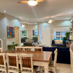 A casa acomoda confortavelmente 10 pessoas.