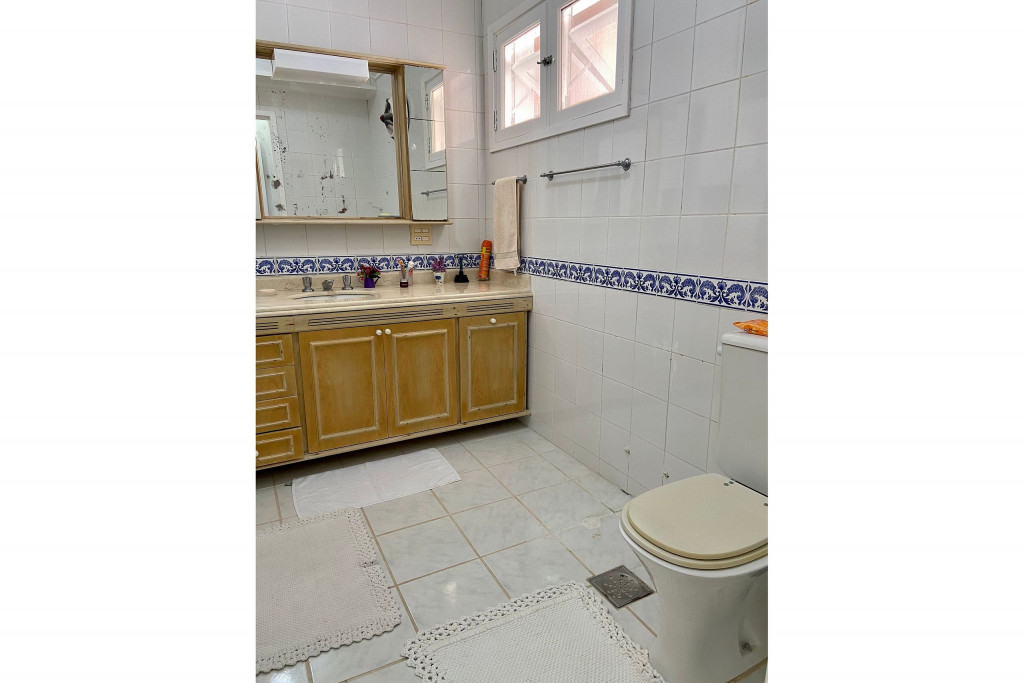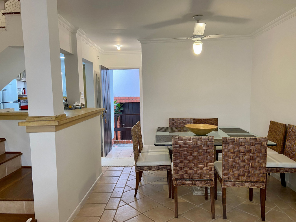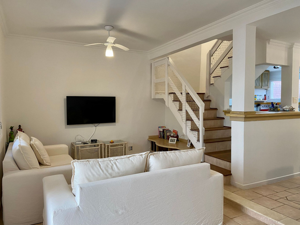 Casa de condomínio com 3 quartos sendo uma suíte a 200m da praia, no canto direito de Juquehy. O condomínio possui piscina e quadra de tênis, além de apoio de praia com cadeiras e guarda sol.No térreo fica sala de jantar e TV, integradas à cozinha americana e à varanda com churrasqueira. Também um lavabo.No pavimento superior ficam os dois quartos, um banheiro e a suíte com vista para o mar.