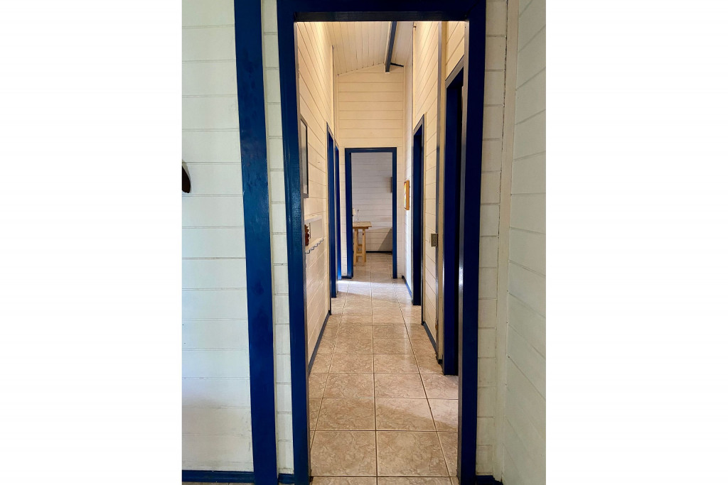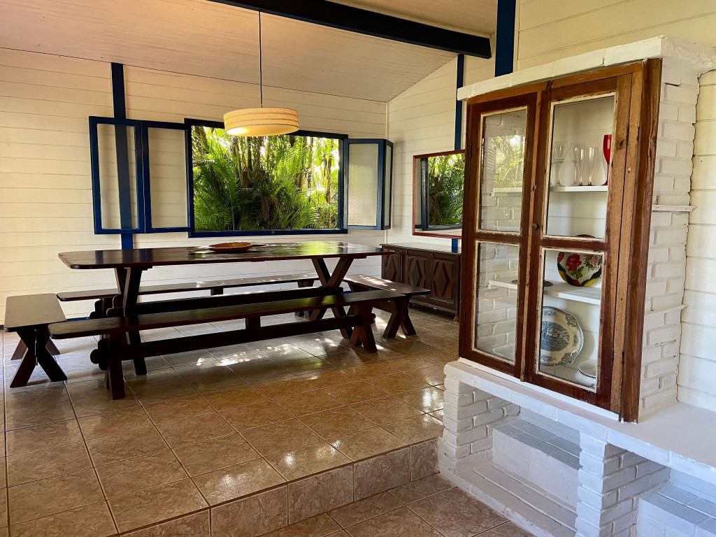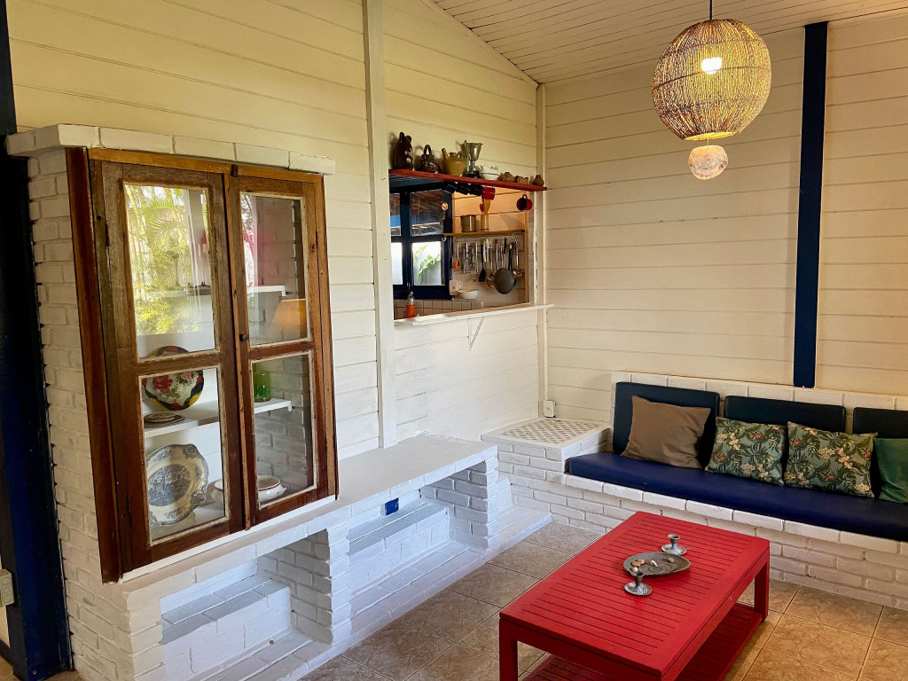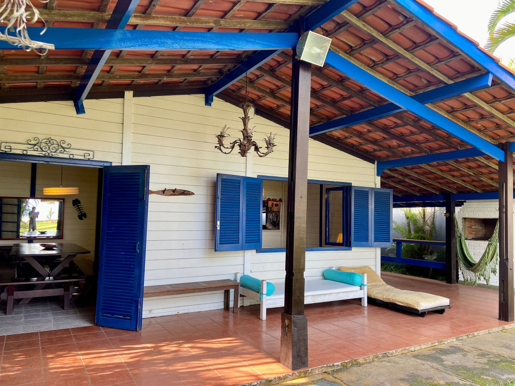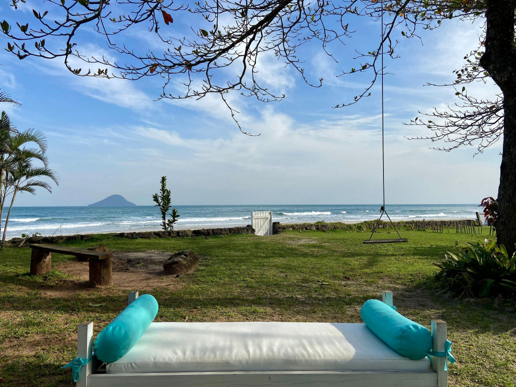 A casa possui quatro quartos, sendo duas suítes (uma com entrada independente). Sala com dois ambientes, com acesso à à uma ampla varanda de frente para o gramado que acaba nas areias de Juquehy. Possui churrasqueira no quintal.