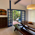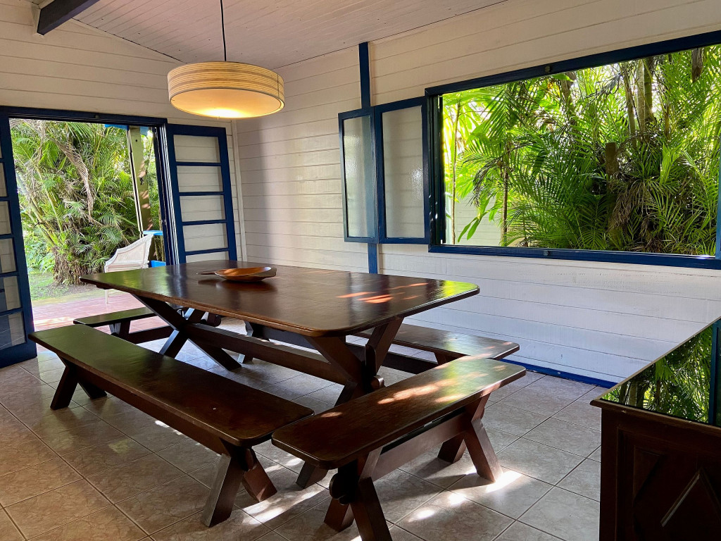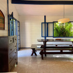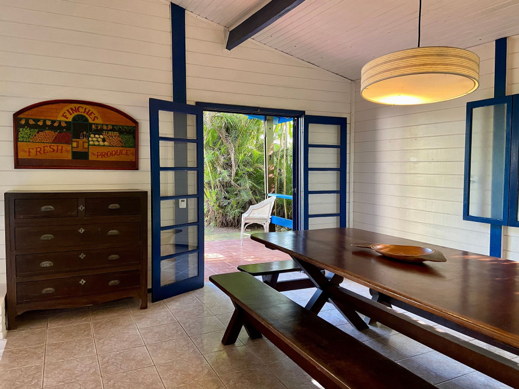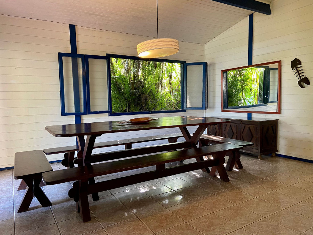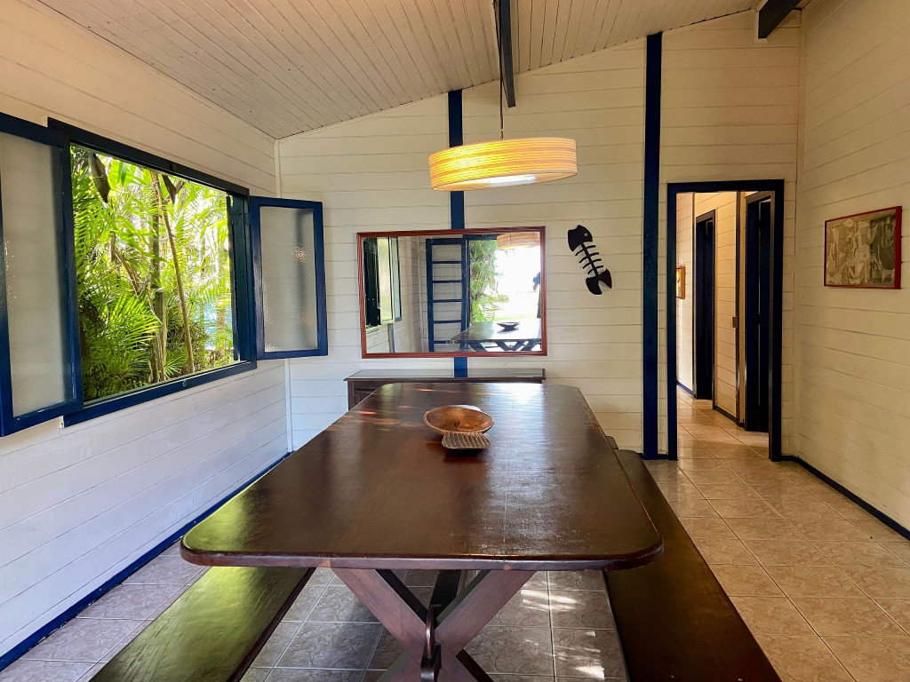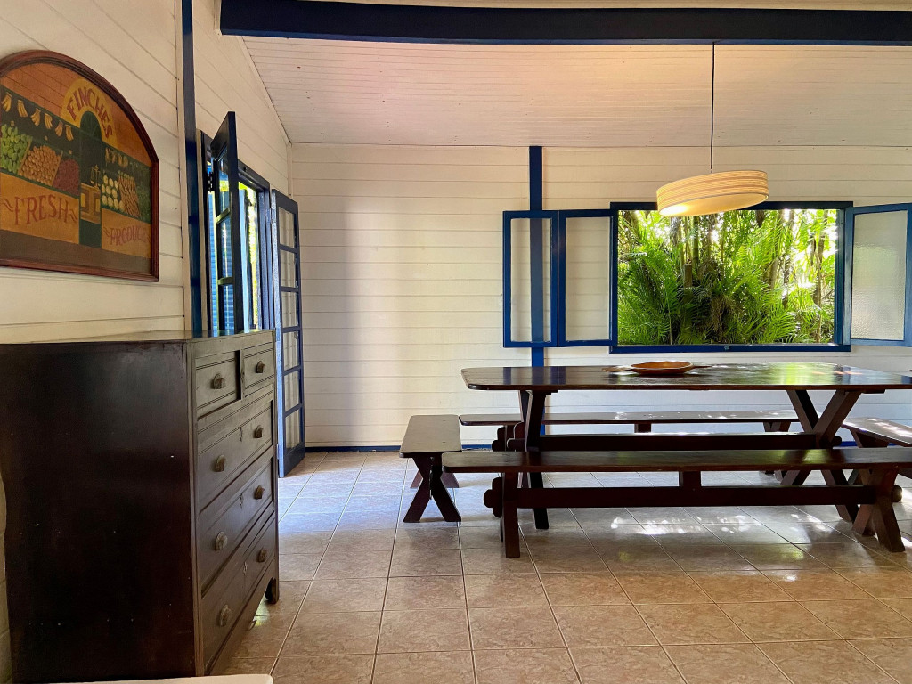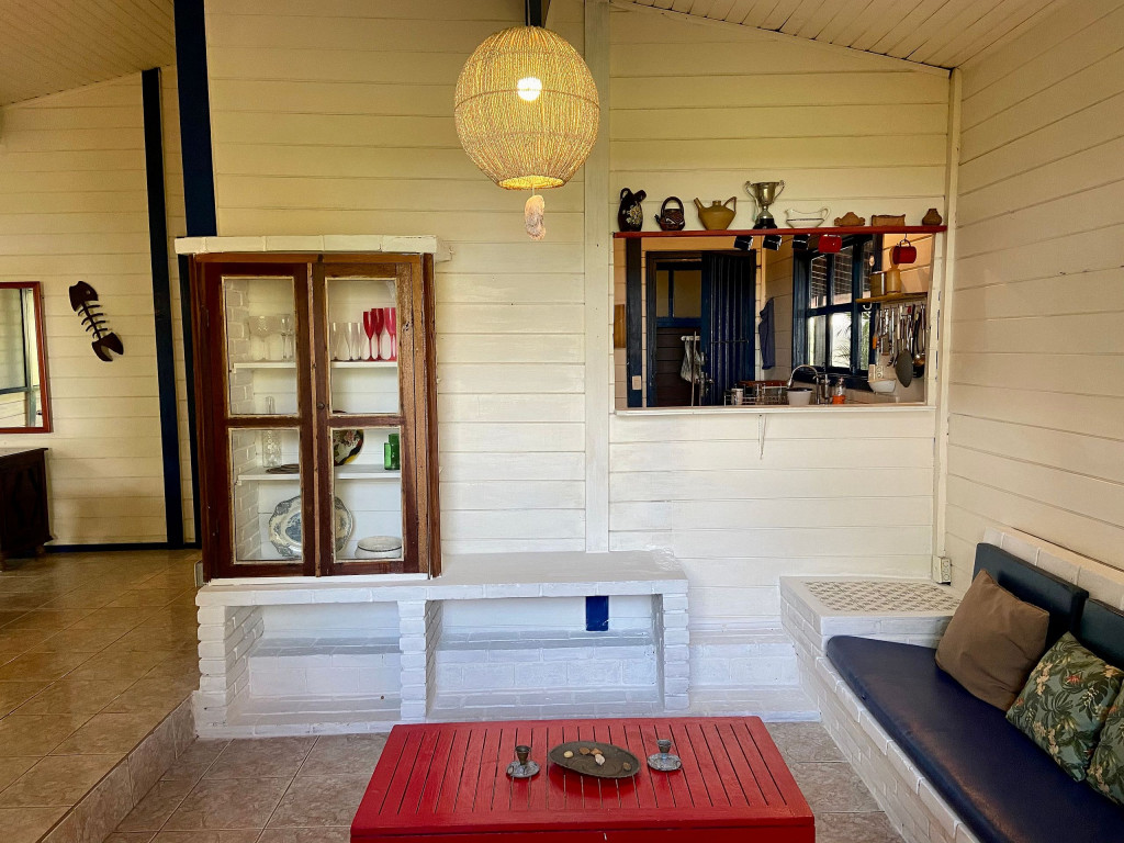 A casa possui quatro quartos, sendo duas suítes (uma com entrada independente). Sala com dois ambientes, com acesso à à uma ampla varanda de frente para o gramado que acaba nas areias de Juquehy. Possui churrasqueira no quintal.
