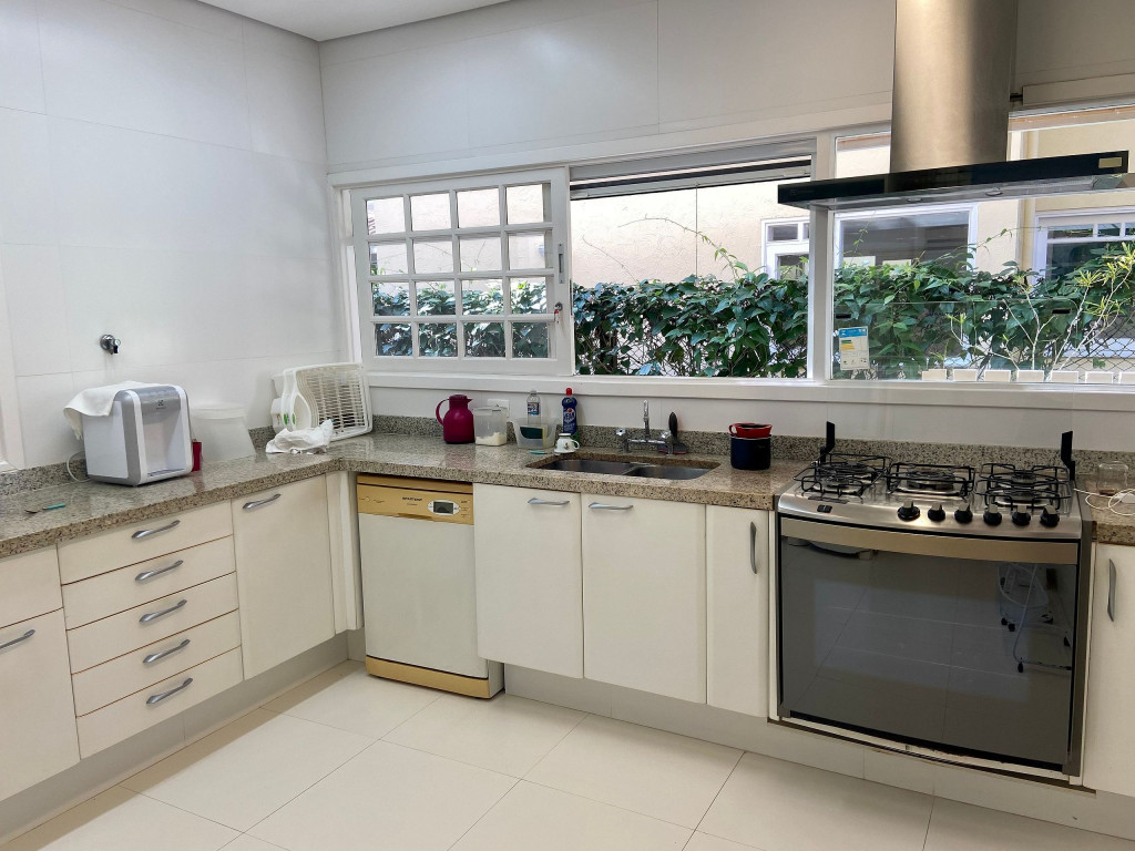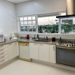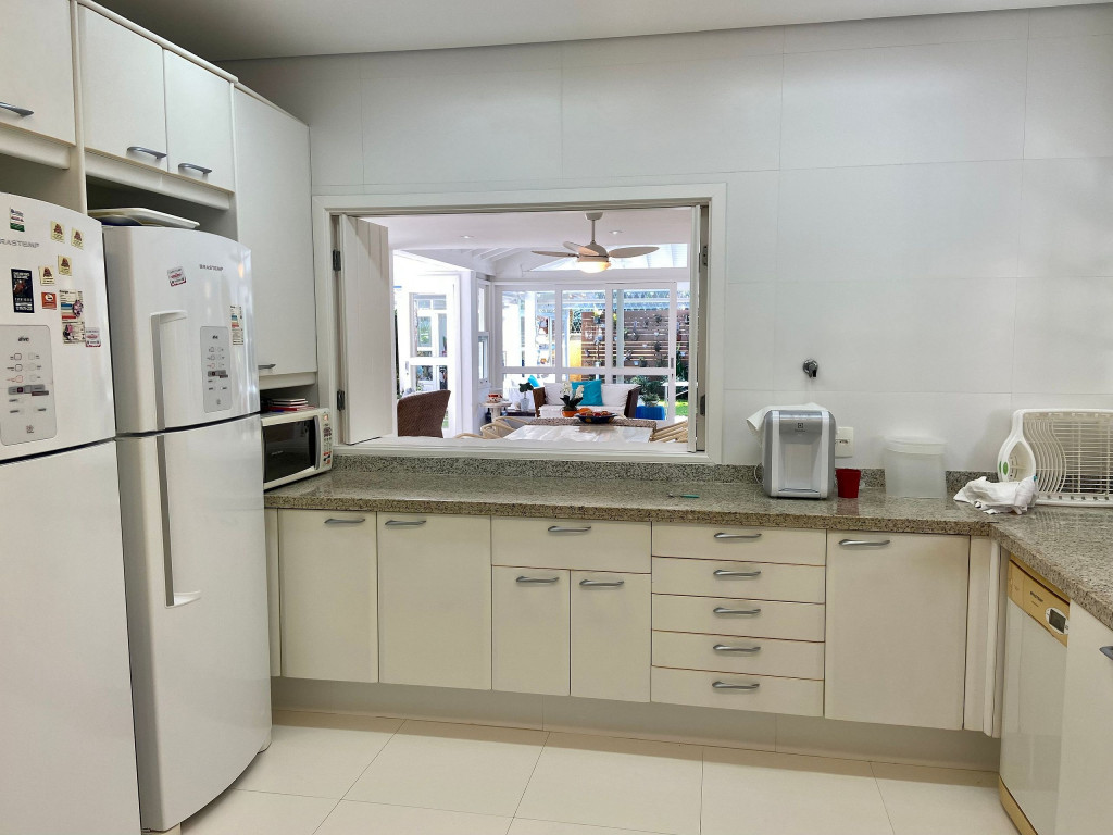 Cozinha: fogão, forno, liquidificador, 2 geladeiras, lava louças, máquina de lavar e secar roupas, microondas e filtro de água.