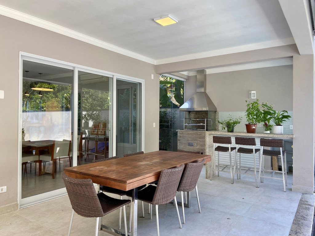 A casa fica no condomínio Aldeia da Baleia, a 950m da praia. Possui piscina privativa, quintal com gramado e uma vista para a mata atlântica.Casa moderna com uma sala integrada à cozinha e varanda. Possui uma suíte no térreo e três no pavimento superior, sendo duas com uma grande varanda virada para os fundos da casa. Cozinha equipada com geladeira, forno, microondas, louças e utensílios.Todas as suítes e também a sala com ar condicionado.Internet wi fi pela casa toda e smart TV na sala.
