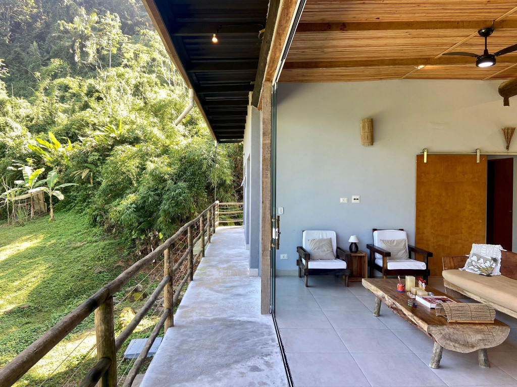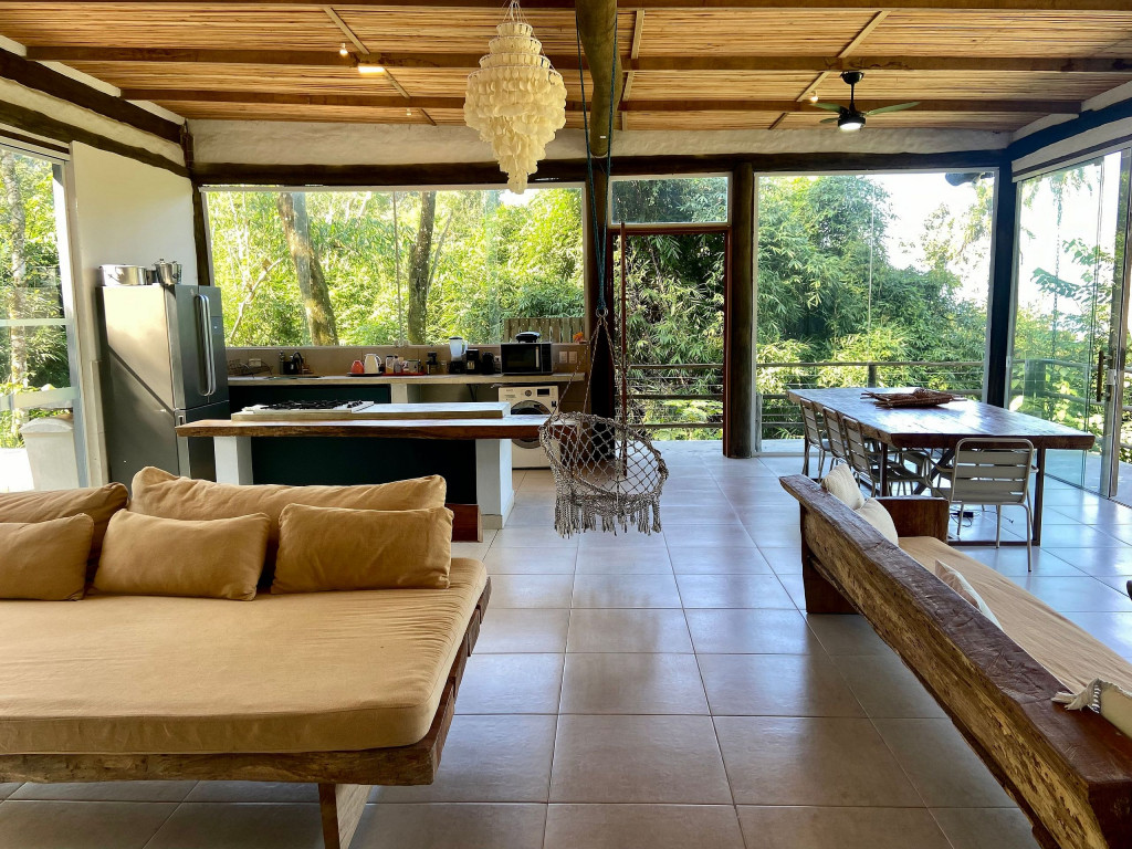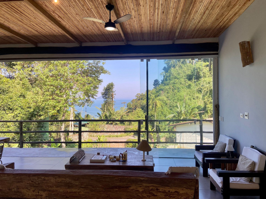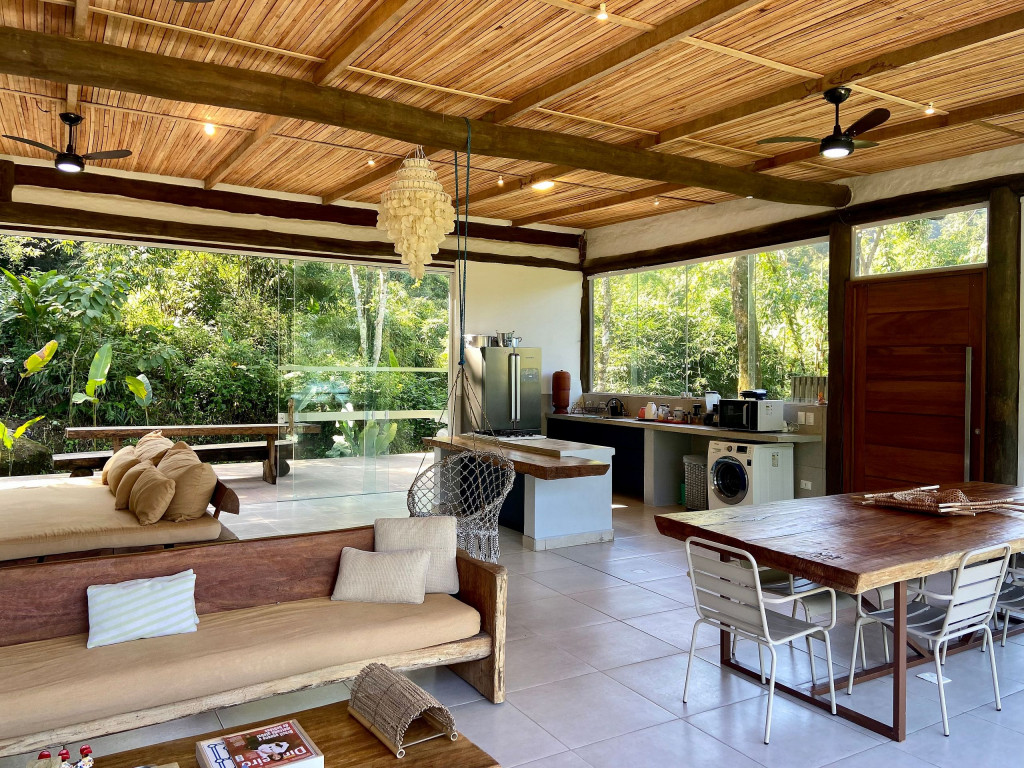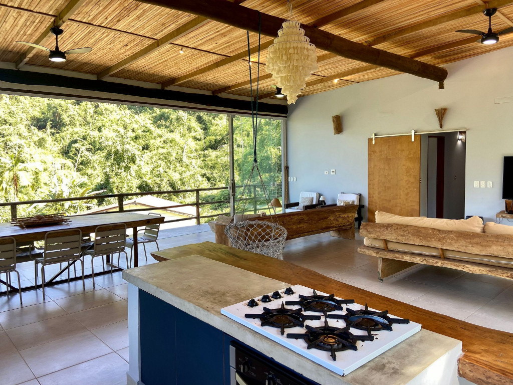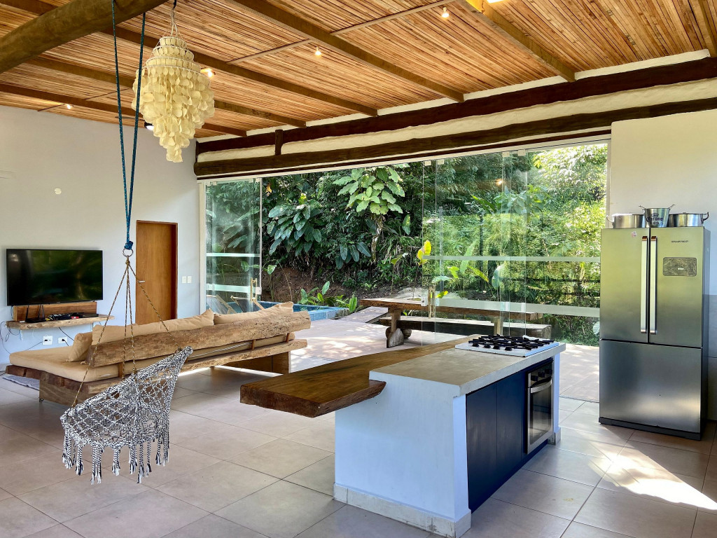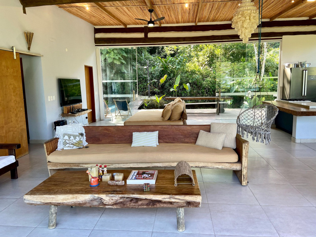 A exclusividade e tranquilidade de uma casa no pé do morro cercada pela mata nativa, com vista para o mar e com fácil acesso ao ponto mais nobre da praia de Juquehy.
