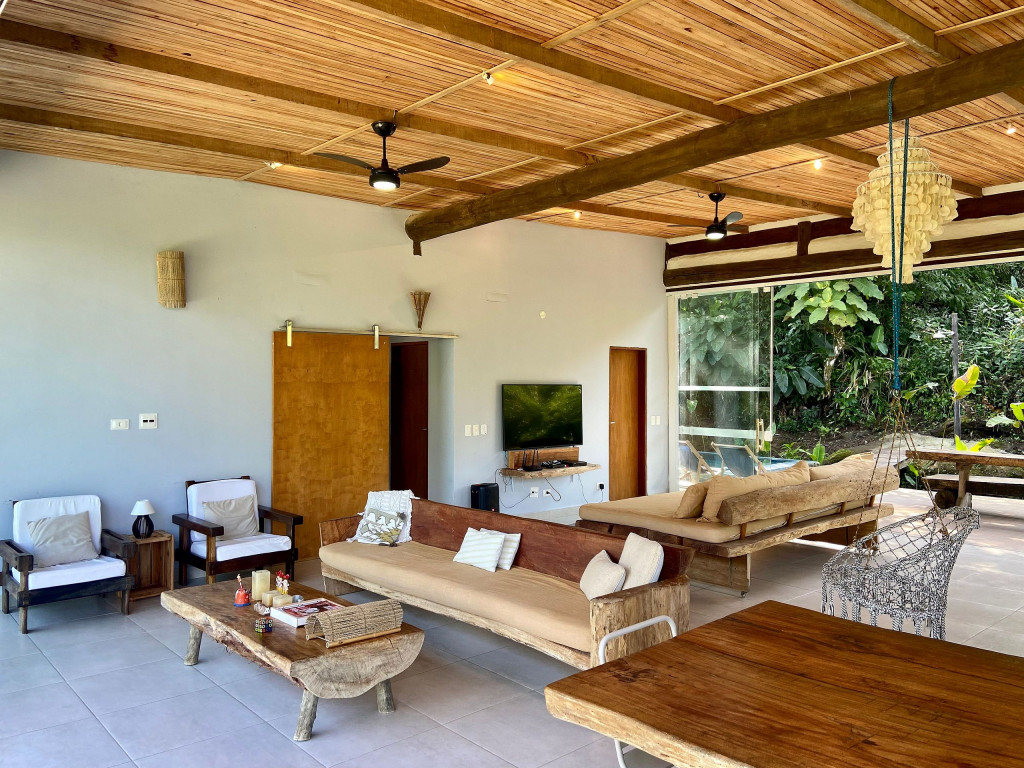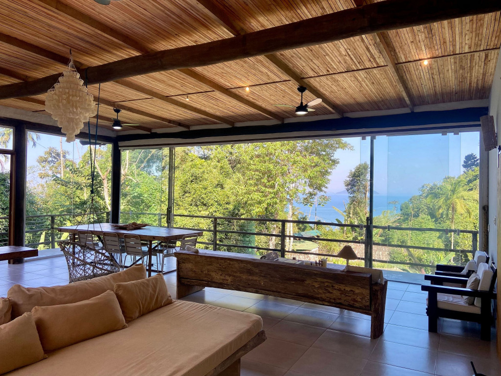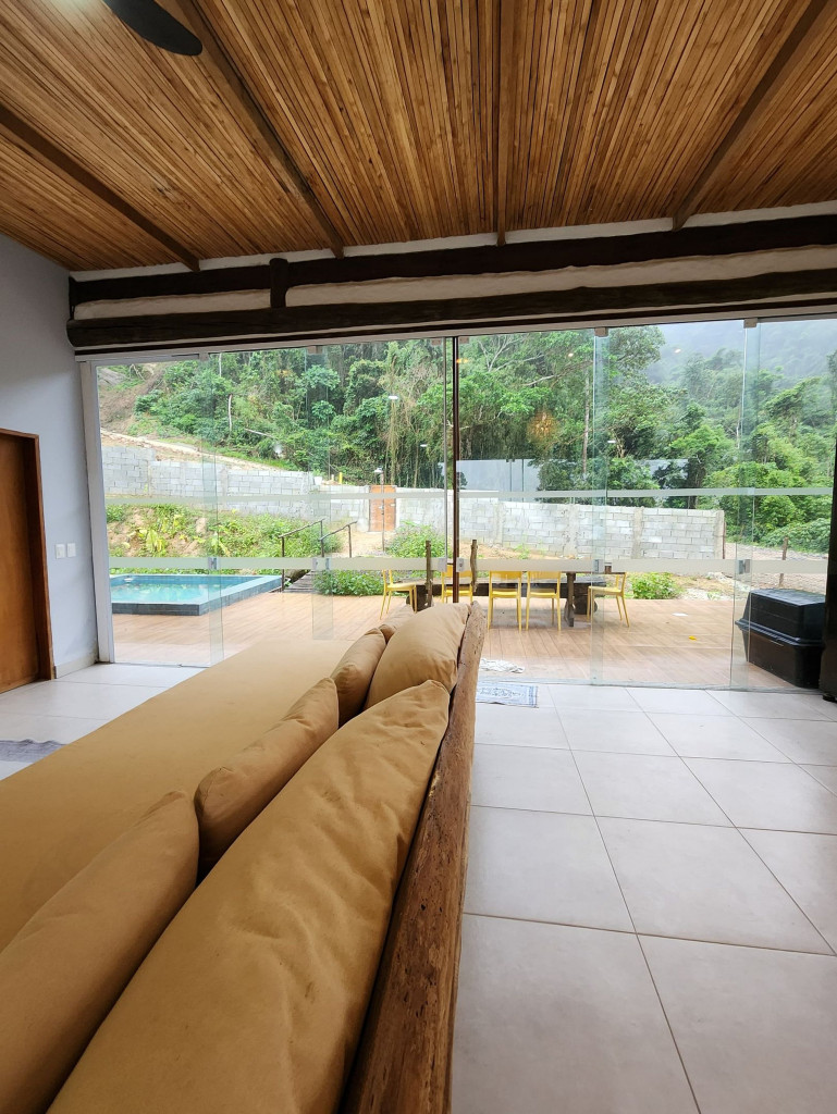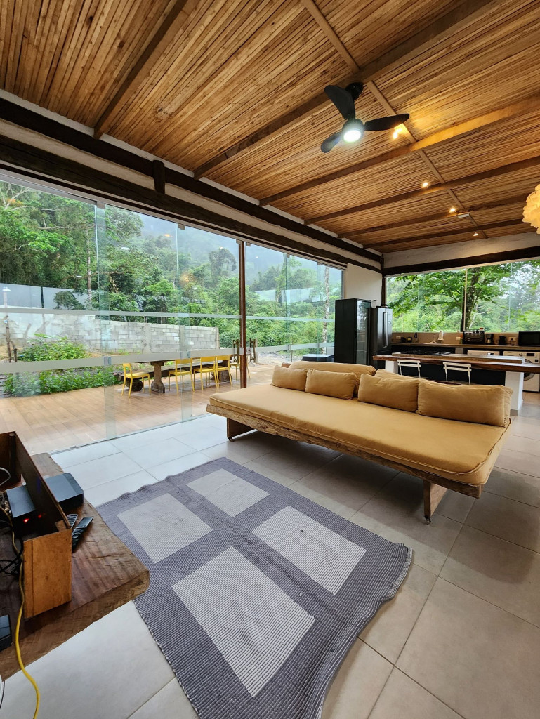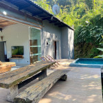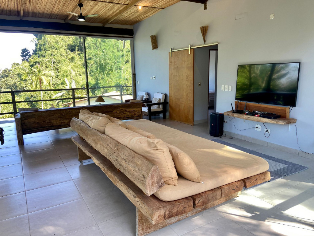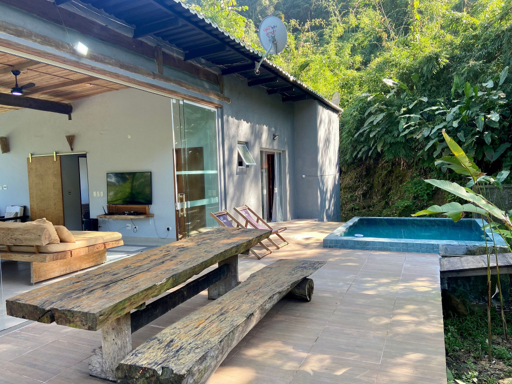 A exclusividade e tranquilidade de uma casa no pé do morro cercada pela mata nativa, com vista para o mar e com fácil acesso ao ponto mais nobre da praia de Juquehy.