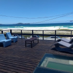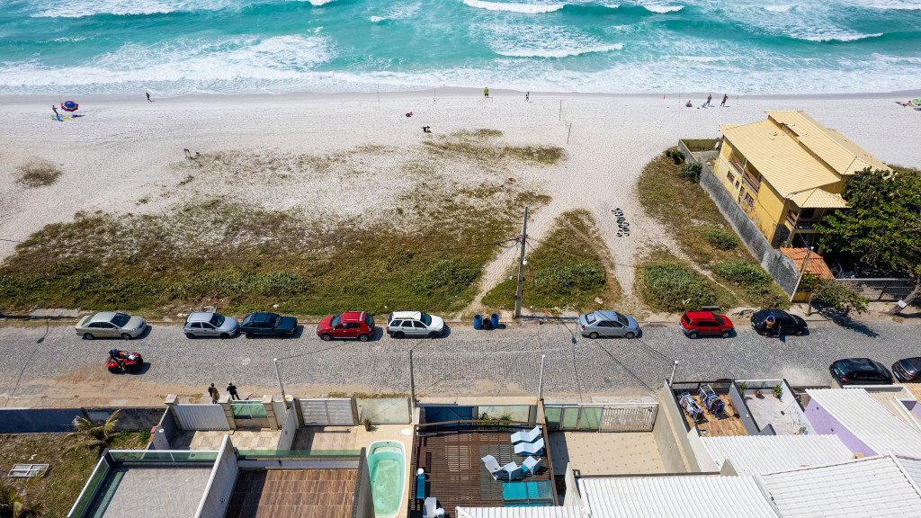 - Piscina grande com spa (não aquecido) e vista para a praia; - Chuveirão; - Deck estonteante de frente para a praia; - Sala em 2 ambientes com TV; - 4 Banheiros (1 no térreo, 1 na edícula (quarto 1) e 2 no 2° andar, sendo 1 no corredor e 1 na suíte); - Cozinha completa; - Área de Serviço com máquina de lavar, tábua e ferro de passar; - Churrasqueira, fogão a lenha e forno de pizza; - Quarto #1 (térreo, na edícula ao lado da churrasqueira com 2 camas de solteiro (1 em beliche). - Quarto #2 (2° andar, fundos) com 3 camas de solteiro (1 beliche). OBS: as camas de solteiro são de mesma altura, dando para juntar e improvisar uma de casal; - Quarto #3 (2° andar, frente) com 1 cama de casal queen e 1 de solteiro; - Quarto #4 - suíte - (2° andar, frente) com 1 cama de casal queen e 2 de solteiro auxiliares baixas; - Quarto #5 (fundos - 3° andar, fundos) com 3 camas de solteiro (1 em beliche); - Vaga para até 2 carros na casa (seguro parar mais carros na rua). OBS: O quarto do terceiro andar (é o 6o quarto da casa) permanecerá trancado durante sua estadia e não é alugado. Comodidades: - Ventilador de teto nos quartos #1, #2 e #3. - Ventilador de pé em cada quarto. - Internet banda larga; - Roupas de cama e toalhas para até 15 pessoas; - Máquina de lavar, tábua e ferro de passar roupas; - Cadeiras de praia; - Cafeteira, sanduicheira, microondas, espremedor de laranja semi industrial;