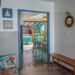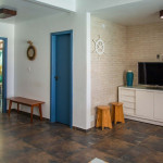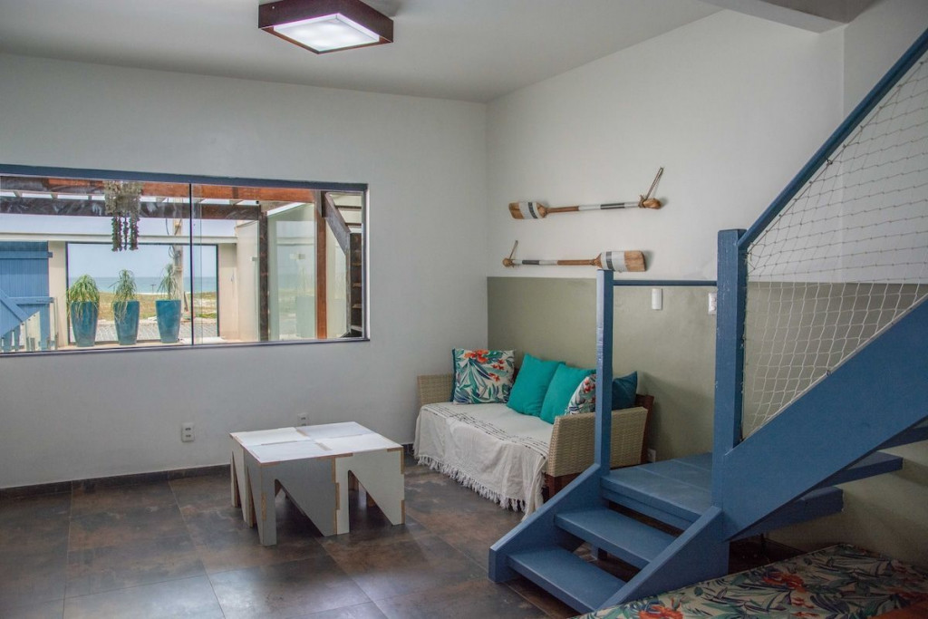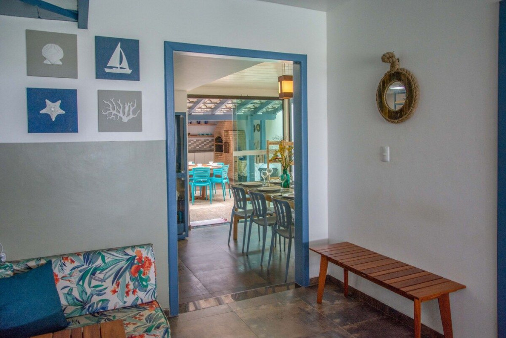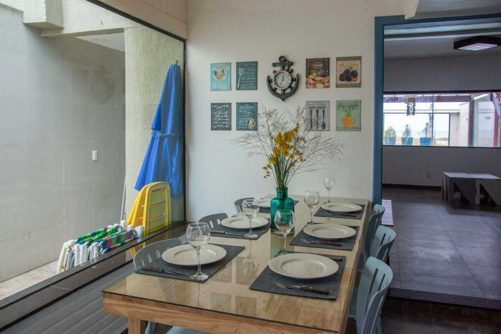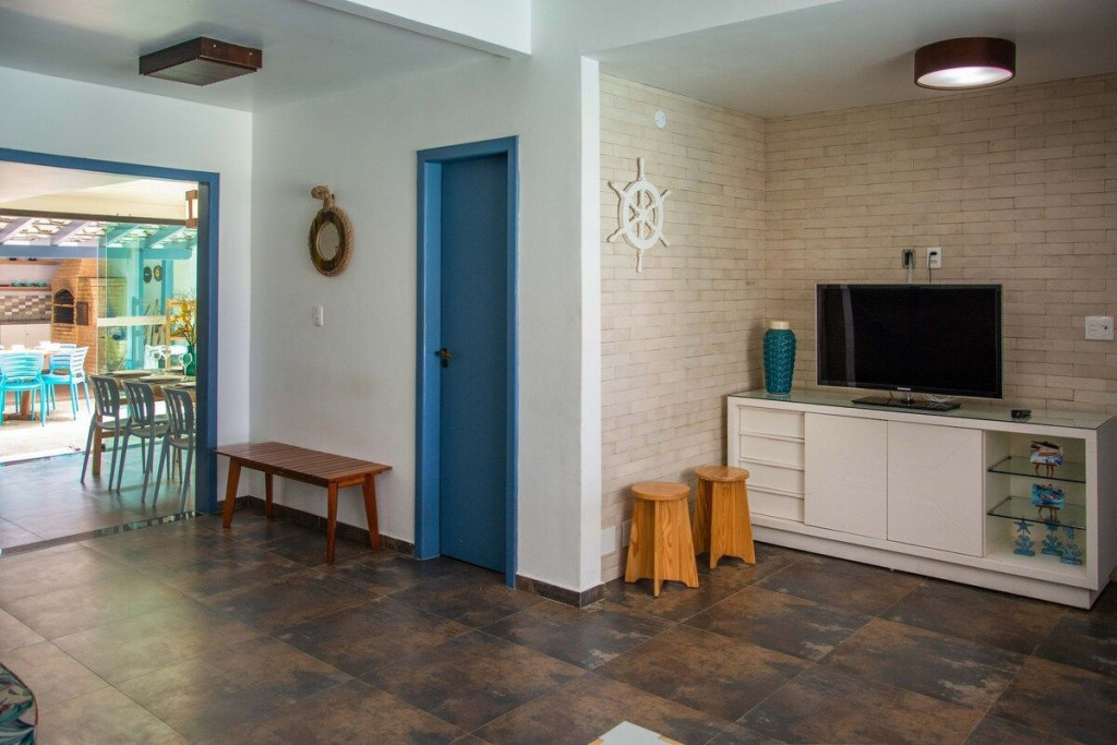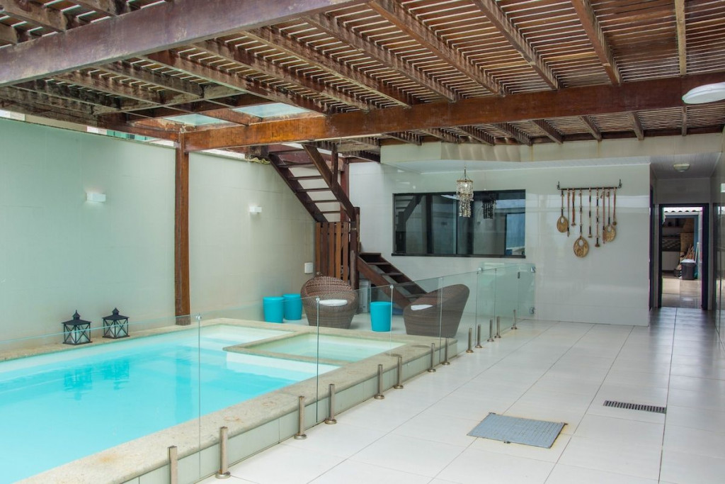 A área comum é fantástica. A integração é perfeita entre piscina, sala, cozinha e churrasqueira, todos no térreo. Isso sem abrir mão da vista, pois há uma janela que permite vista para a praia no muro. O deck, com acesso tanto pela piscina quanto pelos quartos do segundo andar, é um convite para um bate papo durante a noite. Para os avessos ao excesso de sol, há sombra para quem preferir a piscina ou o deck durante o período da tarde. Para os que querem um pouco de descanso, a localização dos quartos nos andares superiores garantem o isolamento necessário para um sono sossegado. Um problema comum em casas de praia é a escassez de banheiros frente ao número de pessoas na casa. Meu espaço possui 4 banheiros completos disponíveis aos hóspedes. A capacidade da casa é para até 15 pessoas, mas dentro desses 15, para conforto adequado, o ideal é 10 adultos e o restante de crianças e adolescentes que fiquem em camas auxiliares (tipo gaveta) ou beliches. SEGURANÇA PARA CRIANÇAS: - A cerca da piscina deve ser mantida fechada na ausência de adultos; - Há telas de proteção nas janelas e escada (ver fotos); - Quando o mar estiver agitado, recomendamos que os pequenos usem a lagoa (ver foto). SEGURANÇA: o bairro é muito tranquilo e ainda conta com cabine de segurança na única entrada de carro.