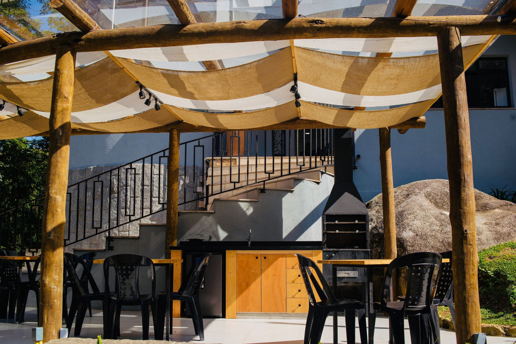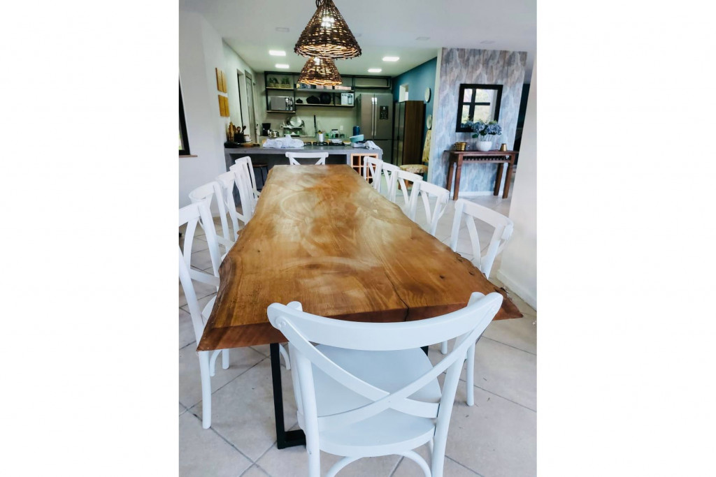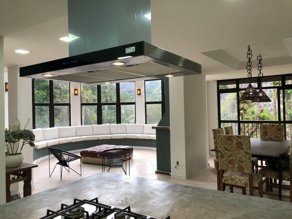Cercada pelas mais lindas montanhas de Araras, são 7 suítes e um quarto prontos para acomodar sua família. A cozinha é 100% equipada e com total integração à sala de jantar, da lareira e de sinuca. Isso tudo com a maravilhosa vista da pedra do Oratório em frente à torre envidraçada. No segundo andar ainda há um salão de TV. Espaço perfeito para reunir a família a curtir dias quentes ou frios. No quintal a churrasqueira é central em relação à piscina natural, cachoeira, SPA aquecido e laguinho.
