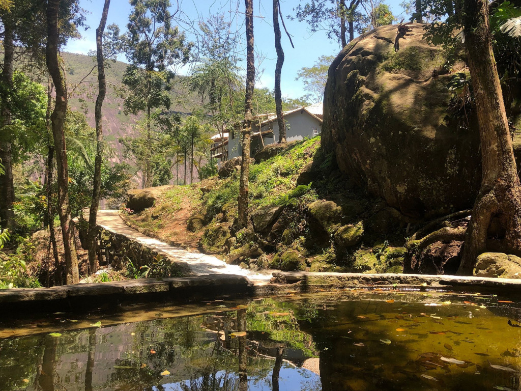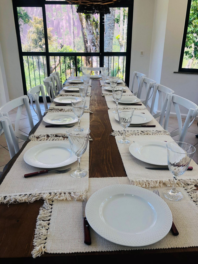 ACESSO: Pavimentado até a porta. QUINTAL: A área externa conta com churrasqueira ao ar livre, spa aquecido, riacho, piscina natural, cachoeira, jardim e lareira portátil para uma fogueira. A área da churrasqueira é colada à casa para a maior integração possível. OBS: O volume de água no riacho / cachoeira depende das condições climáticas. Entre maio e setembro há menos água e entre outubro e abril há mais abundância. ÁREA DE LAZER / CONVIVÊNCIA INTERNA: No primeiro andar há uma excelente integração entre a sala de lareira / estar, de pé direito duplo e com vista para a lindíssima Pedra do Oratório, a sala de jantar, a cozinha e a sala da sinuca. São quase 100 m2 de área integrada interna que garantem que mesmo nos dias mais frios e chuvosos se possa desfrutar da convivência familiar com a mesma liberdade de um quintal. A sala de TV foi instalada no segundo andar para garantir menor interferência entre quem quer ver TV e a conversa animada que certamente estará acontecendo no primeiro andar. QUARTOS: São 4 suítes no primeiro andar + 3 suítes e 1 quarto no segundo. Todos contam com ar condicionado quente / frio. OBS: as camas de solteiro de 3 suítes podem ser usadas juntas como uma cama queen. Há portas separando a área dos quartos da área de convivência para garantir maior conforto aos que vão dormir mais cedo e/ou preferem acordar mais tarde. O oitavo quarto não tem banheiro com chuveiro separado para ele. Quem ficar nesse quarto deve usar o chuveiro de um dos banheiros das suítes. Quarto ideal para crianças ou adolescentes, que usarão o chuveiro na suíte dos pais. NÚMERO DE HÓSPEDES: Até 22 hóspedes, contando com camas, camas auxiliares (infantis) e colchões. Para maior conforto, recomendamos máximo 14 adultos e 8 crianças. OBSERVAÇÕES: Os caseiros moram na propriedade, estando disponíveis para dúvidas ou auxílio que precisarem. Não é incluído serviço de arrumação e limpeza, mas sintam-se à vontade para contratar de fora ou combinar com os próprios caseiros. Acesso exclusivo a todas as áreas nas fotos. Os caseiros, Sônia e José Carlos, moram no apartamento de caseiros e estarão disponíveis para qualquer dúvida. Se precisarem de serviço extra de faxina combinar diretamente com eles.
