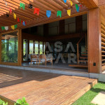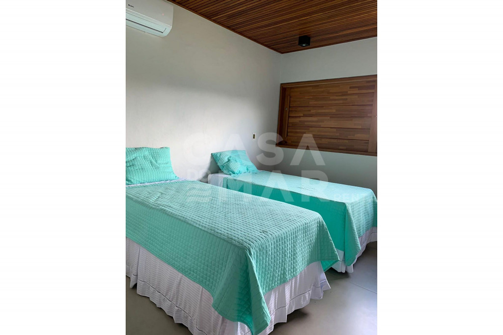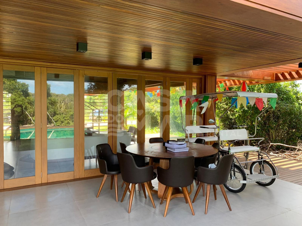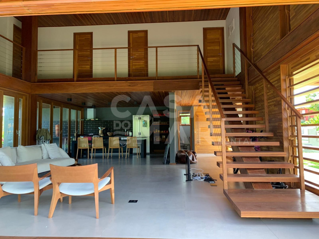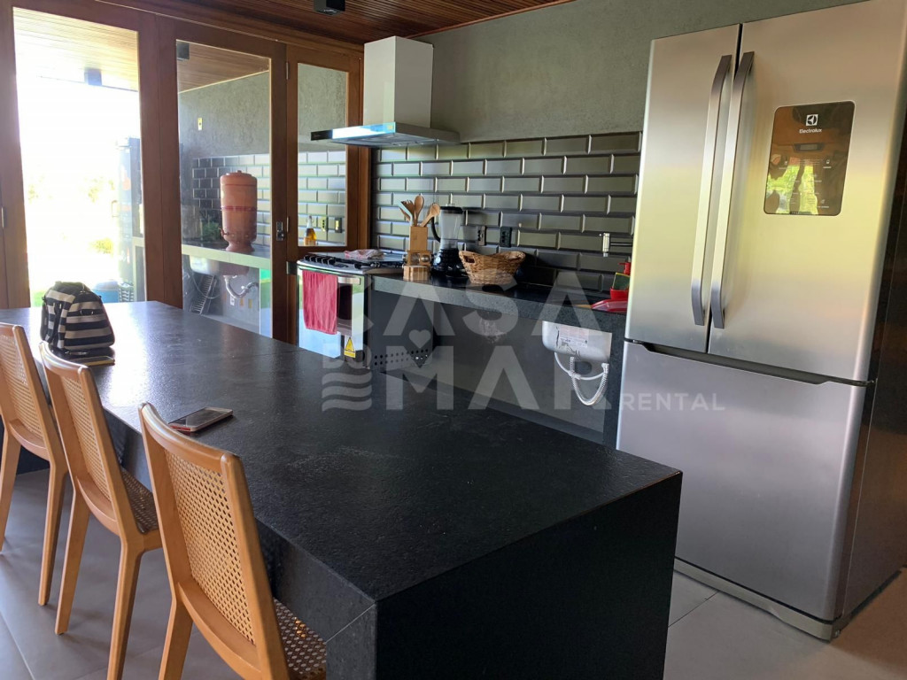 Com uma arquitetura diferenciada, a casa é totalmente integrada, inclusive com a natureza, com 4 suítes todas com ar-condicionado, sala de jantar e estar e cozinha completa.O condomínio tem clube, academia, quadra de tênis e parquinho infantil.Área de lazer com linda piscina privada, espaço gourmet com churrasqueira. A casa está há 120 mts do Mar.