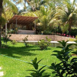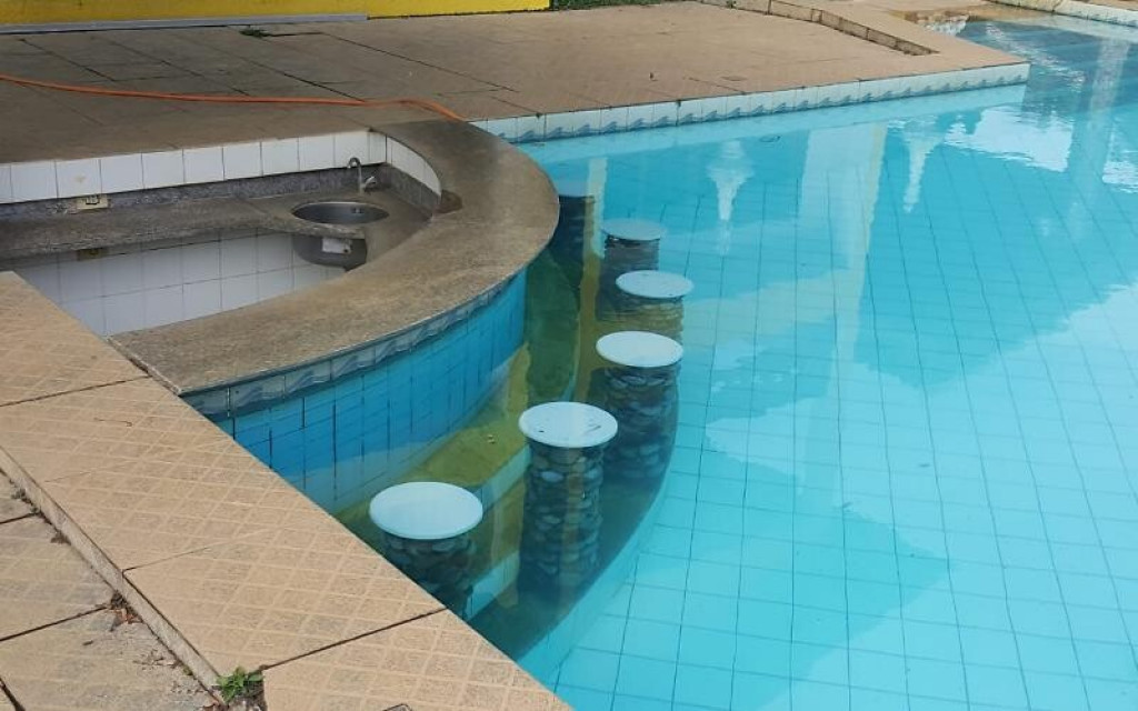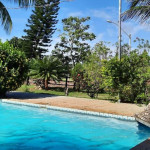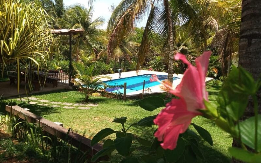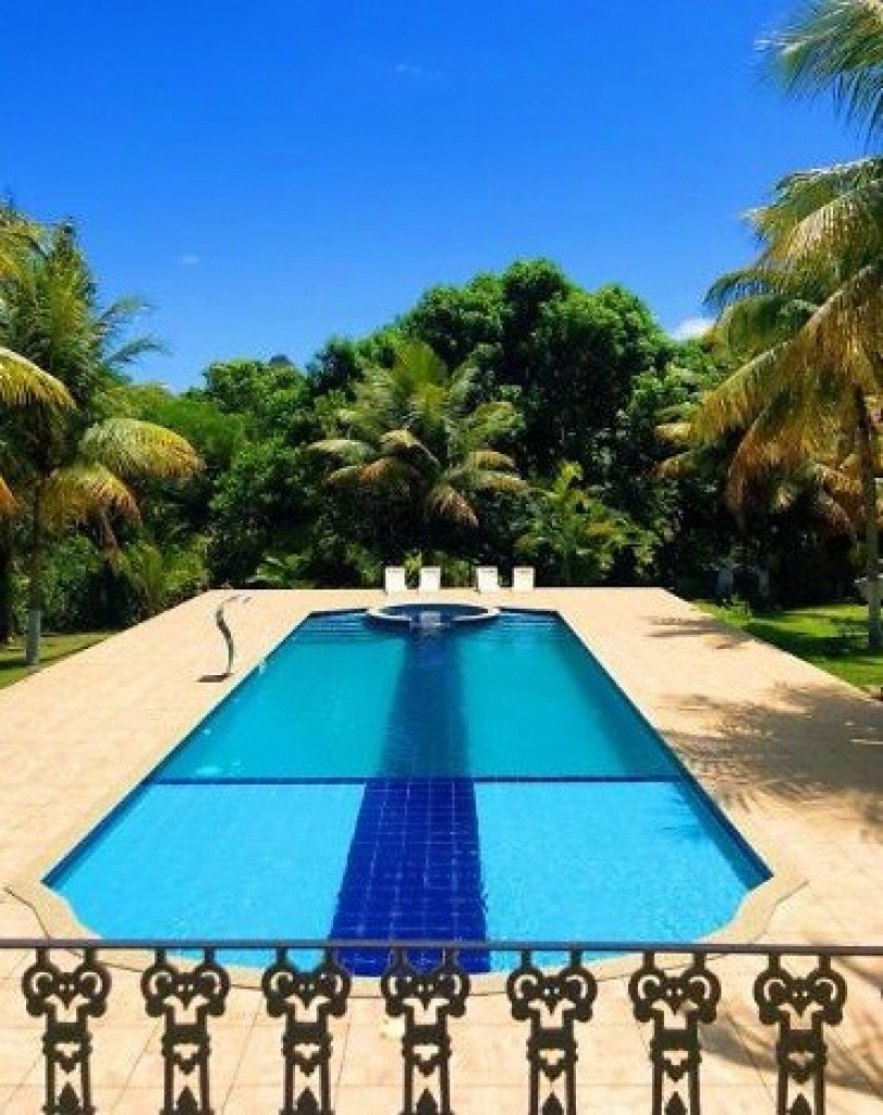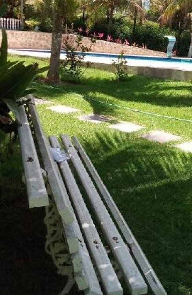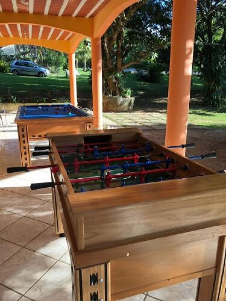 Sítio próximo ao trevo de Guarapari na Rod. Do Sol, com 9.000m2 com piscina e churrasqueira, área verde, casa com 4 quartos, sala, cozinha, varandão, alojamento para 50 pessoas, vários jardins.