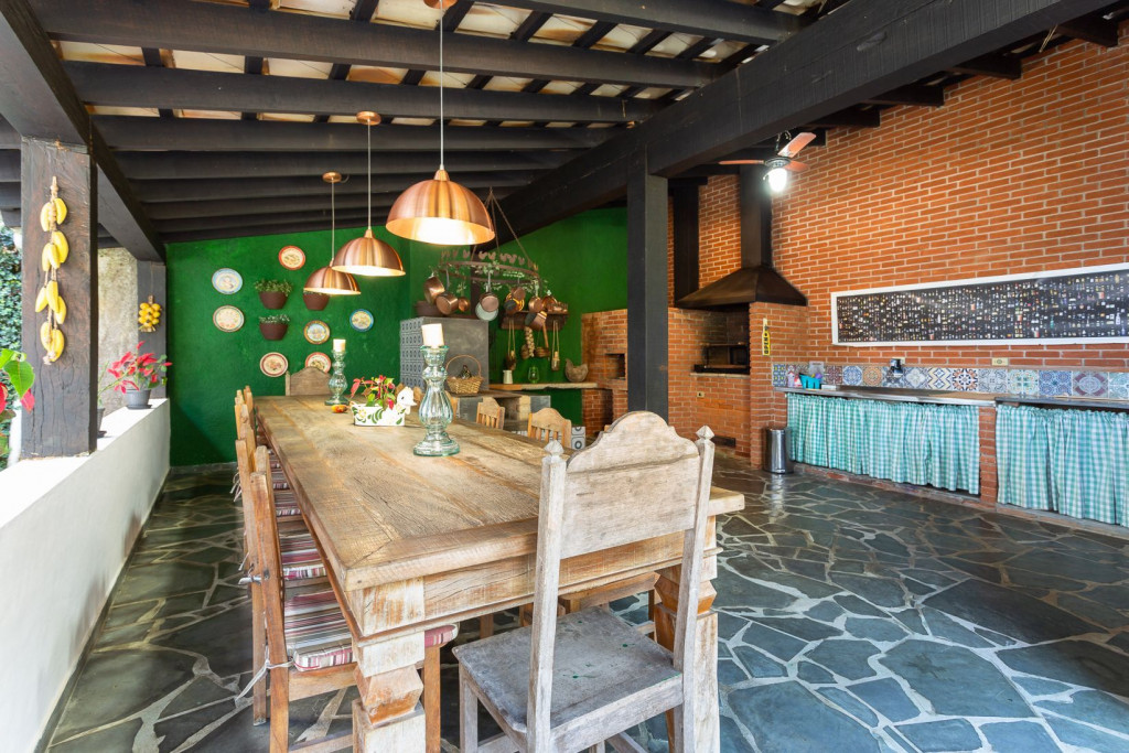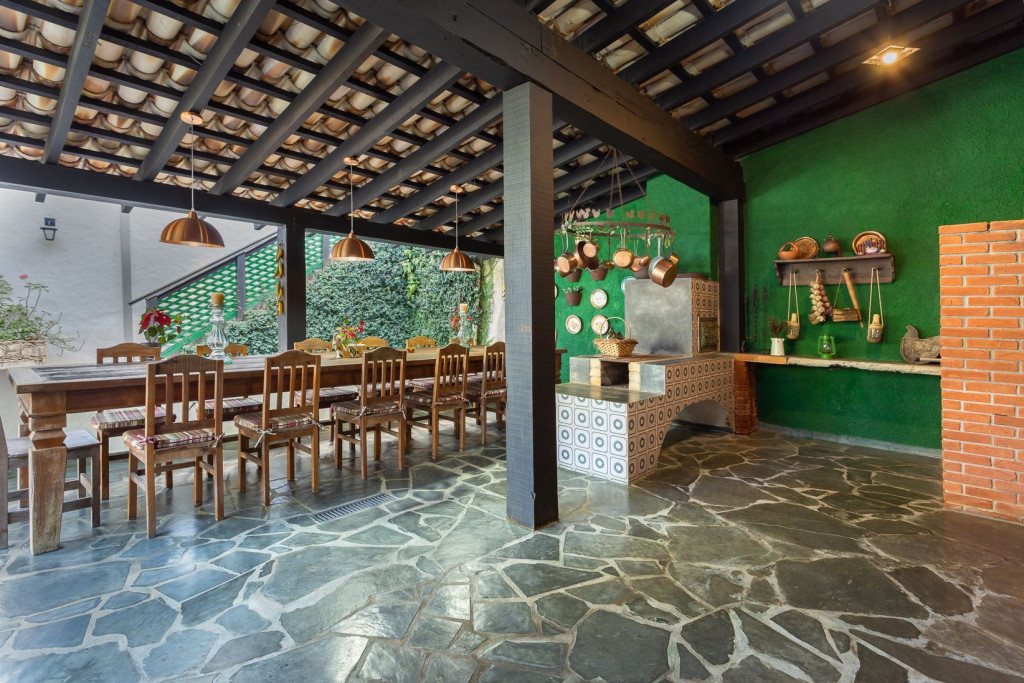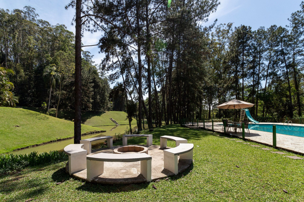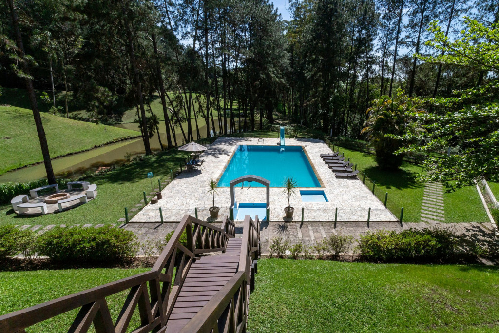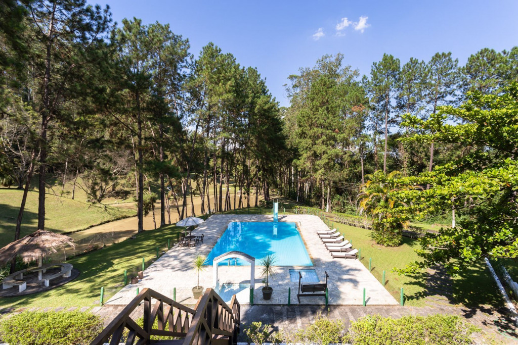 Acomoda até 20 pessoas pessoas confortavelmente em 2 casas, sendo uma principal e outra casinha extra. Conta com uma ampla área de lazer com churrasqueira, forno e fogão a lenha, piscina, dois lagos, sala de cinema, adega, lareira, horta, galinheiro, e muito espaço para caminhar em meio a natureza.