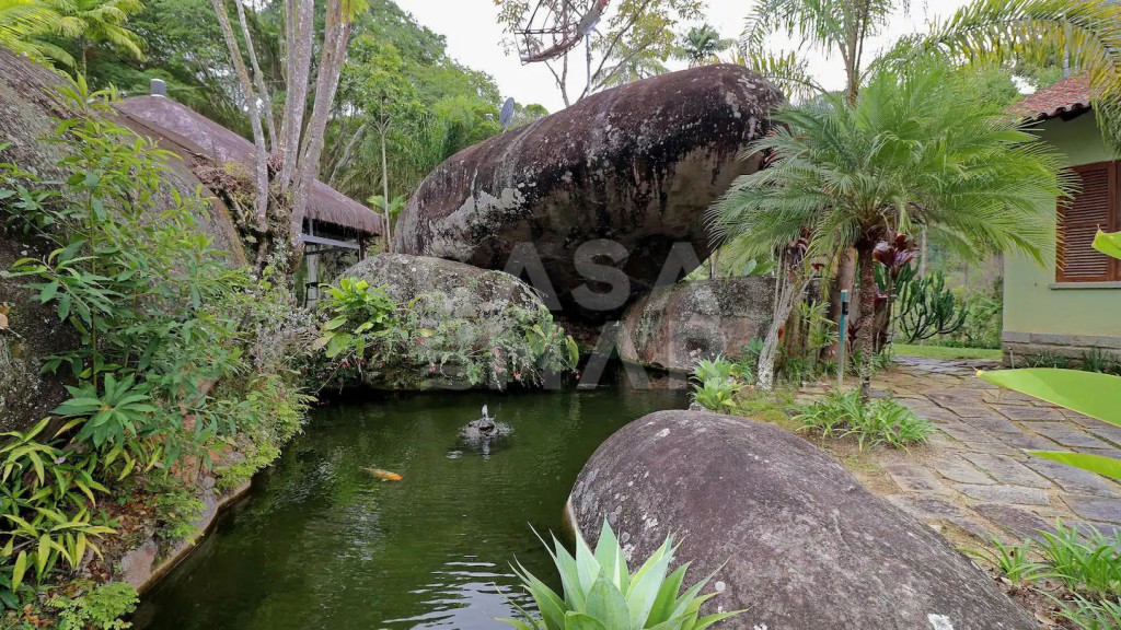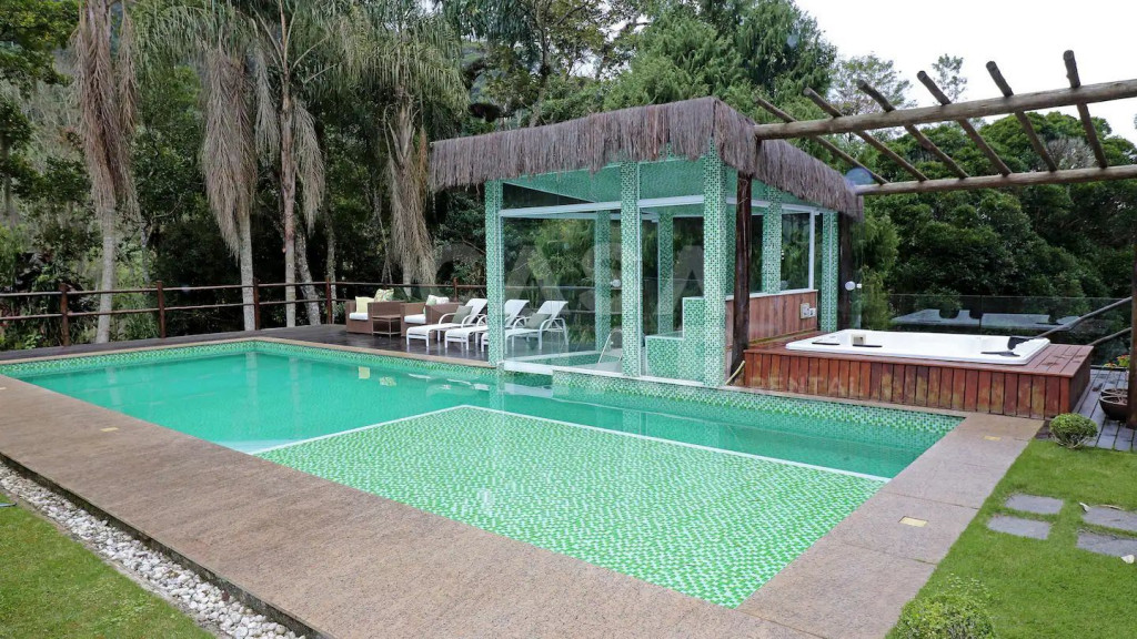 O sítio possuí amplo gramado, lago com caiaque, quadra de tênis, parquinho infantil e todas às demais comodidades da casa.