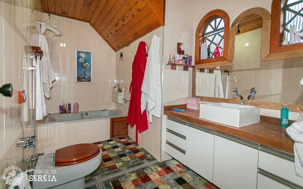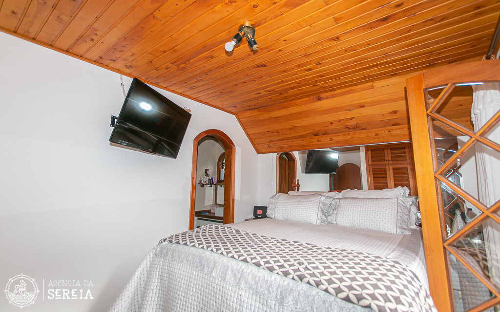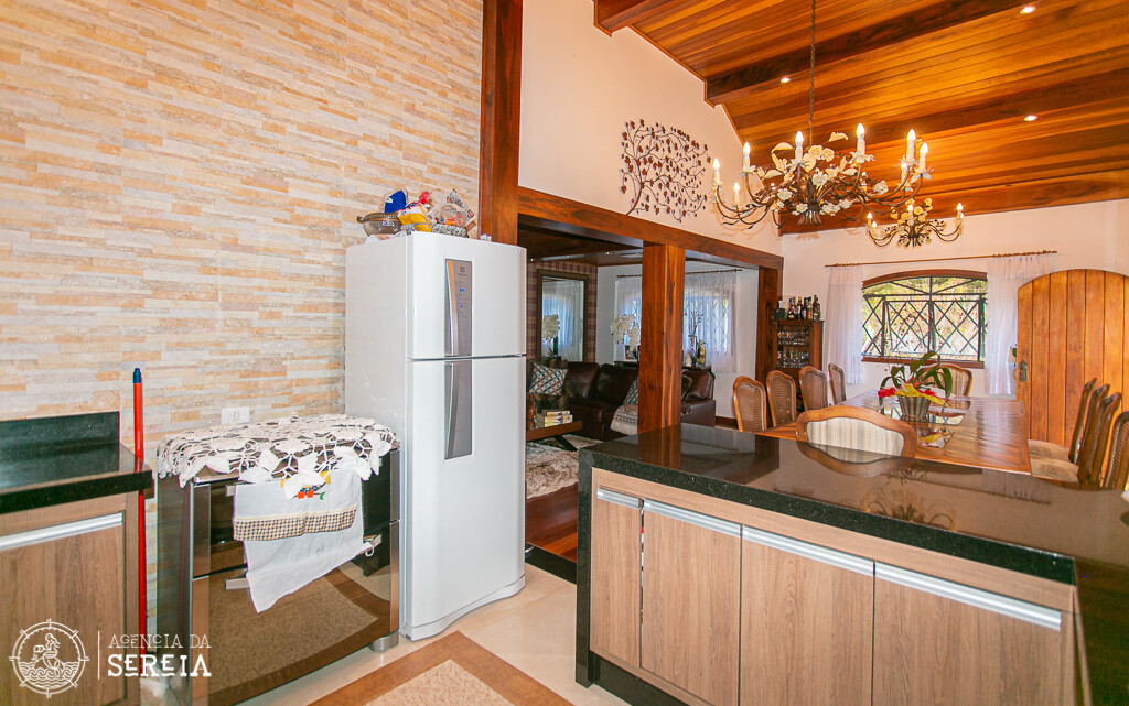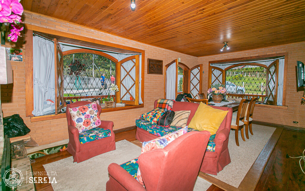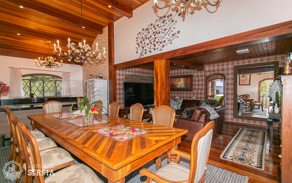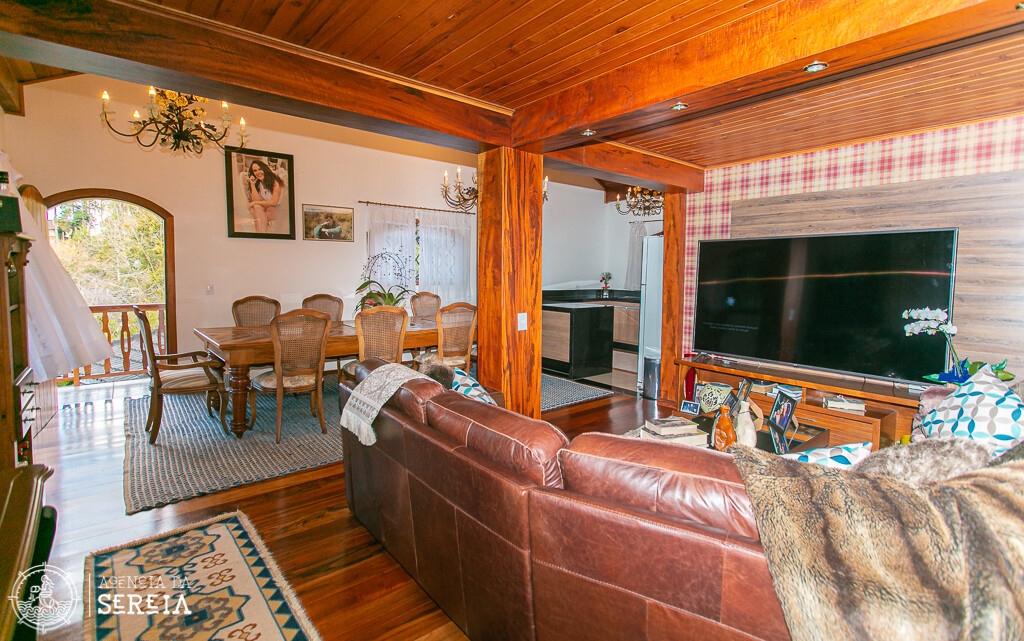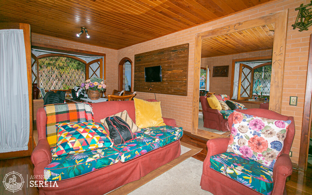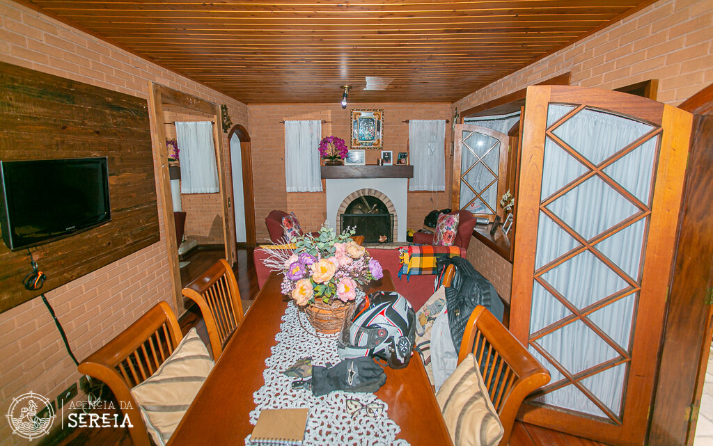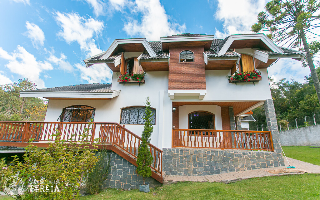 Sobrado com uma linda e completa decoração. Sala de estar com lareira, sala de TV, sala de jantar com uma mesa que cabe toda a família e cozinha completa. Ela comporta até 6 pessoas. Possui 3 suítes, sendo uma com banheira e cama de casal, outra com cama de casal e uma com cama de solteiro.