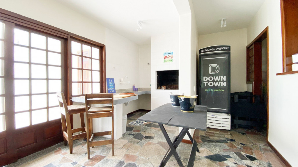Na área dos fundos, você encontrará uma ampla piscina em alvenaria, acompanhada por um banheiro social e um espaçoso local para tomar sol e relaxar.