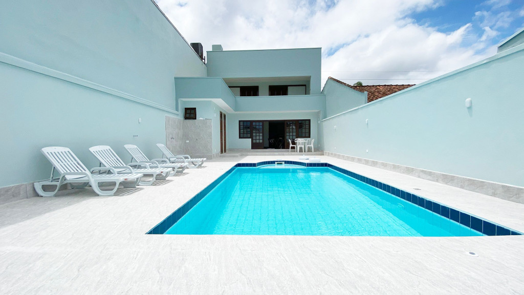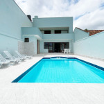 Esta bela residência está localizada no centro de Guaratuba e oferece uma área total construída de aproximadamente 300,00m², em um terreno de 8,00 metros de frente por 40,00 metros de extensão da frente aos fundos.