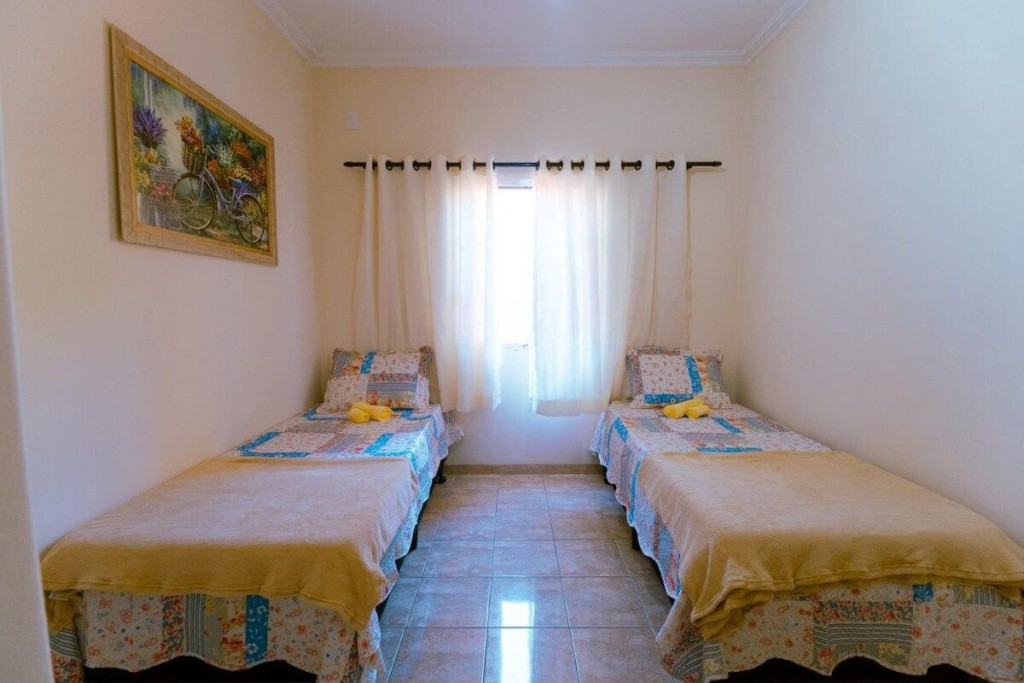 Um sobrado espaçoso, que te dará momentos relaxantes e inesquecíveis Area de churrasco completa Wi-Fi 250 mega A apenas 10 minutos do Termas Acqualinda Ideal pra famílias e grupos de amigos, 7 camas, 4 colchonetes e um berço para seu bebe Enxoval completo para todos os hospedes (Cama e banho) Todos os quartos no térreo possuem Ar condicionado Vão se sentir muito aconchegados em cômodos muito espaçosos e sala de esta com pé direito com vista para o segundo andar , e tv start .