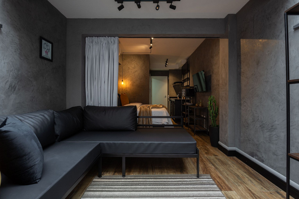 O projeto arquitetônico aliou o estilo moderno industrial nas areas internas do aparamento preservando uma area aberta no terraço que permite relaxamento e com que o ocupante se sinta parte da cidade. O apartamento conta com cortina em todas as entradas de luz tanto do solarium(teto) como nas janelas. A área de estar ainda possui um largo e confortável sofá que integra com a área externa do terraço garden.