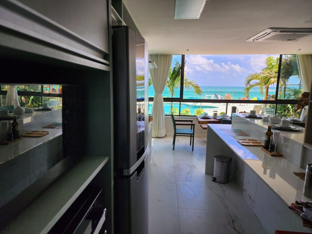 Três suítes confortáveis, sala, cozinha e jantar com vista para a piscina e para o mar.