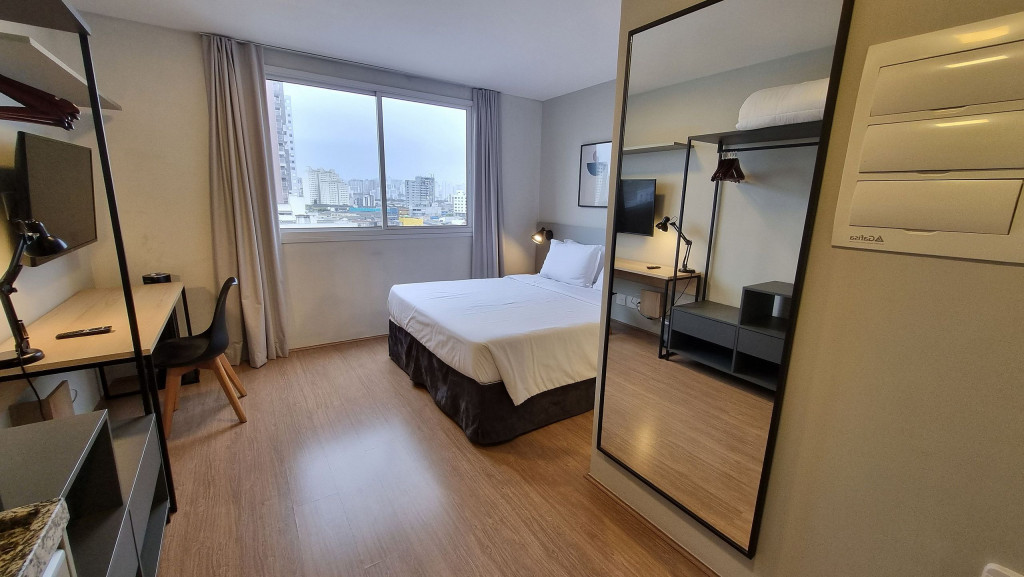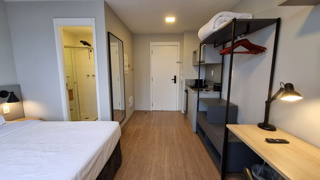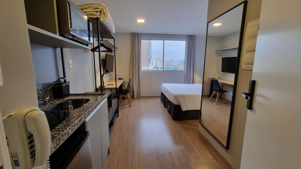 Studio com decoração de alto padrão pensado para curtas ou longas estadias. Perfeito para casais, pessoas viajando sozinhas a lazer/trabalho ou famílias com um filho. Estrutura para até 2 pessoas. Apê a 200 metros da estação do Brás em rua tranquila e silenciosa. Farmácia, padaria, mercados a um passo de distância, além de um parque bem arborizado a apenas uma quadra do studio.