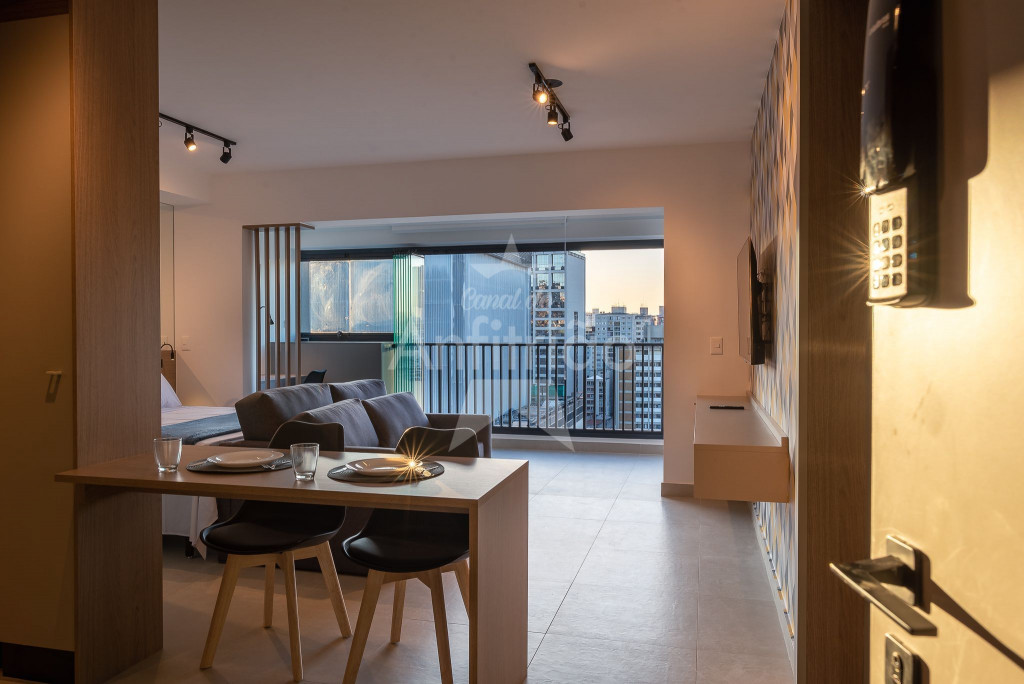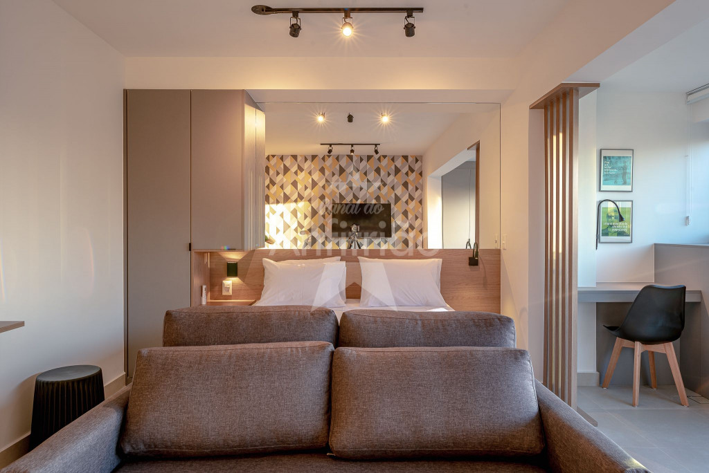 Com vista do 23° andar, o studio tem um design incrível, conta com vaga de garagem inclusa, e o suprassumo é a piscina coberta e aquecida do prédio.