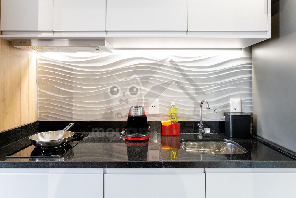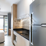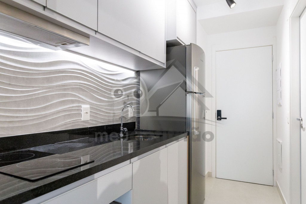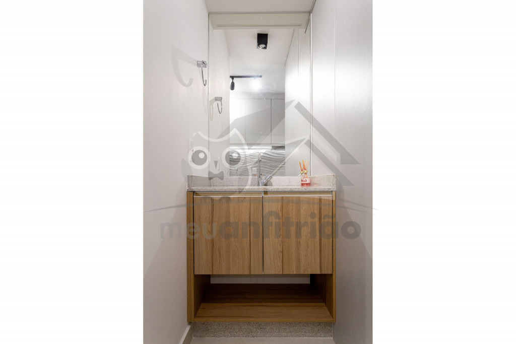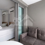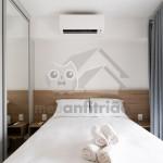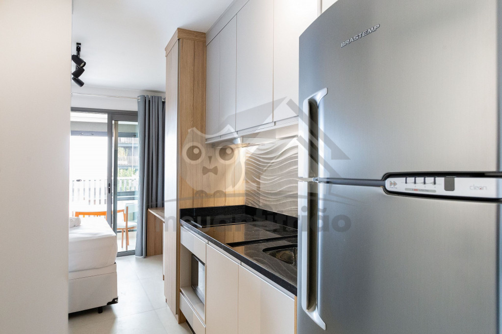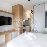 O studio é em conceito aberto e acomoda até 2 pessoas em queen. No mesmo ambiente dispomos de uma cozinha com utensílios necessários para uma estadia prática, banheiro, armário, escrivaninha para home office e TV Smart.