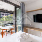 Situado em condomínio com infraestrutura de lazer, nosso studio acomoda até 2 pessoas em uma cama de casal e é uma ótima opção para quem busca praticidade e conforto. Conta com lavanderia compartilhada, espaço home office e varanda com mesas e vista privilegiada.