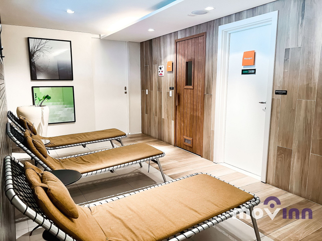 O apartamento possui terraço, Wi-fi cortesia e uma vaga na garagem. O edifício proporciona diversas opções de lazer e descanso, como piscina, sauna, sala de massagem, espaço de coworking, entre outros.