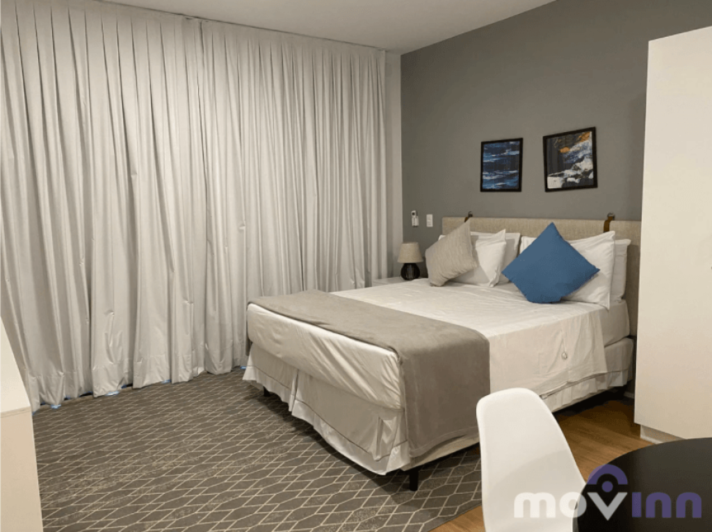 Com portaria 24 horas, o apartamento possui 45 m², recém reformado, com armários planejados em todos os ambientes, quarto com cama Queen Size, ar-condicionado, Smart TV de 40’ com acesso WI-fi e banheiro. A cozinha está totalmente equipada com geladeira, forno, cooktop, micro-ondas, cafeteira, sanduicheira e todos os utensílios necessários para que você se sinta em casa.