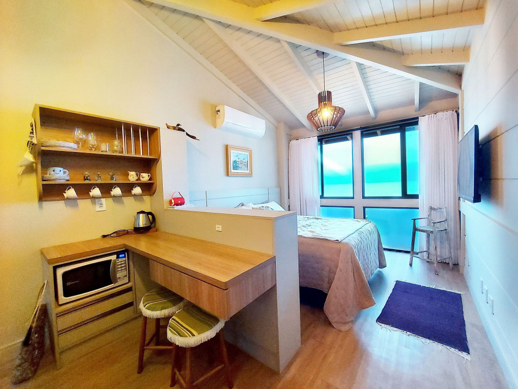 Sinta o mar aos seus pés nesse novo Studio com vista para o mar, sem obstruções! Excelente localização, ao lado do famoso restaurante Ostradamus. Oferecemos estacionamento privado em frente a casa, Ar-condicionado e Wi-fi. Assista o por do sol magnifico da cama! Descanso e romantismo garantido.