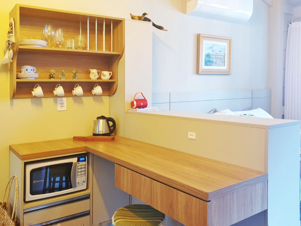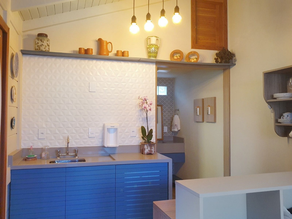 Localizada na orla da praia, no primeiro andar. Conceito amplo, construção e decoração sustentáveis. Espaço para trabalho/estudos na bancada com vista para o mar, Cozinha compacta para pequenas refeições integrada com o quarto. Quarto com Smart TV e prateleiras para guardar roupas e pertences. Varanda charmosa com cadeira de balanço! Oferecemos Wi-fi, roupas de cama/banho. Seguimos protocolo de higienização. A entrada é privada e a casa próxima aos restaurantes, cafés e ao comércio local.