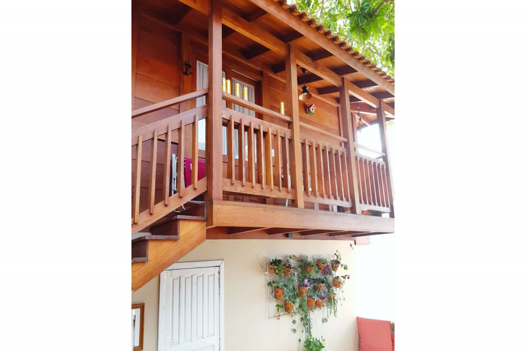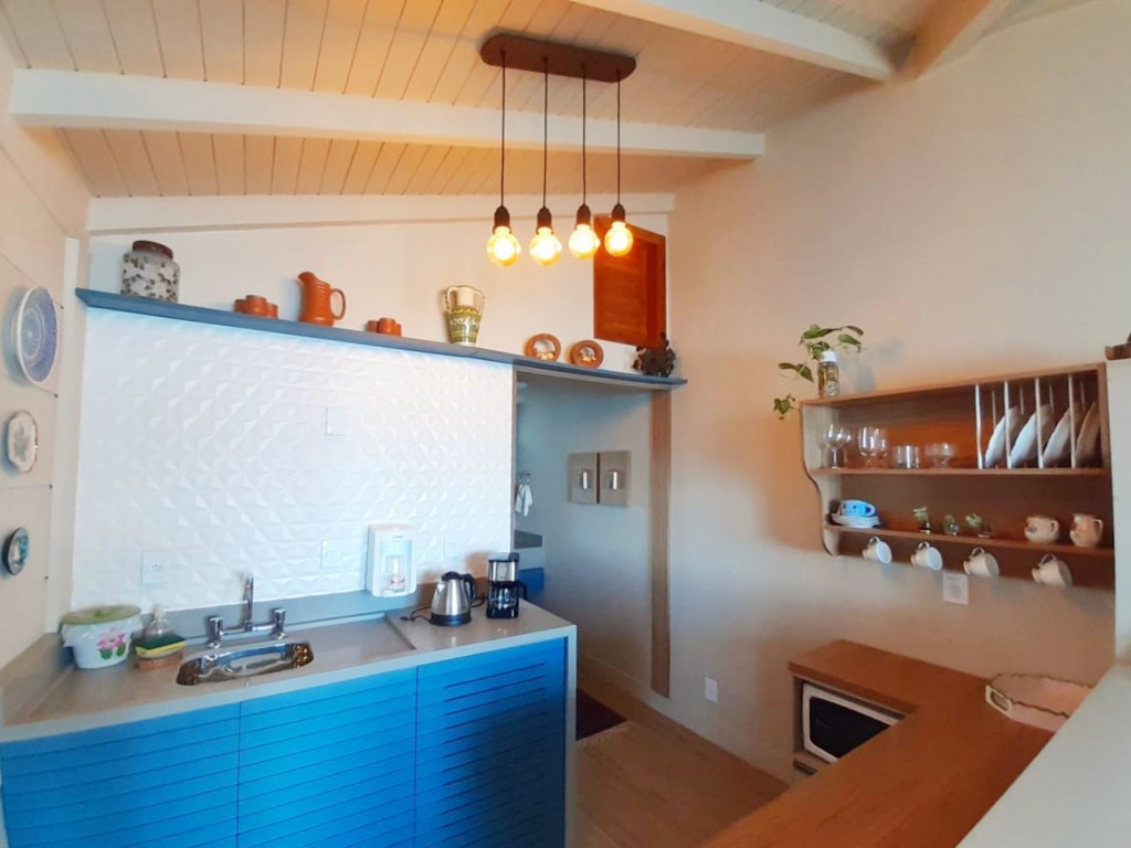 Fachada charmosa em estilo açoriano com Pátio/Quintal interno e acesso direto a praia! Praia calma, sem ondas, ideal para casal e família! Studio no 1o andar, deve subir 1 lance de escadas;