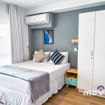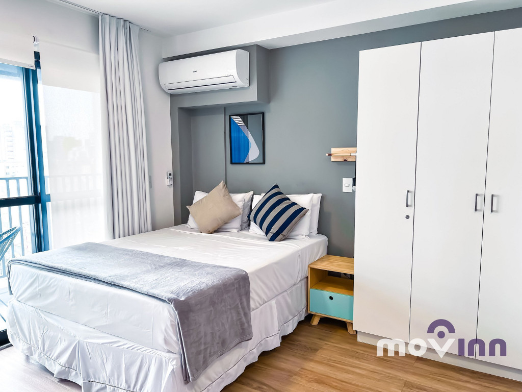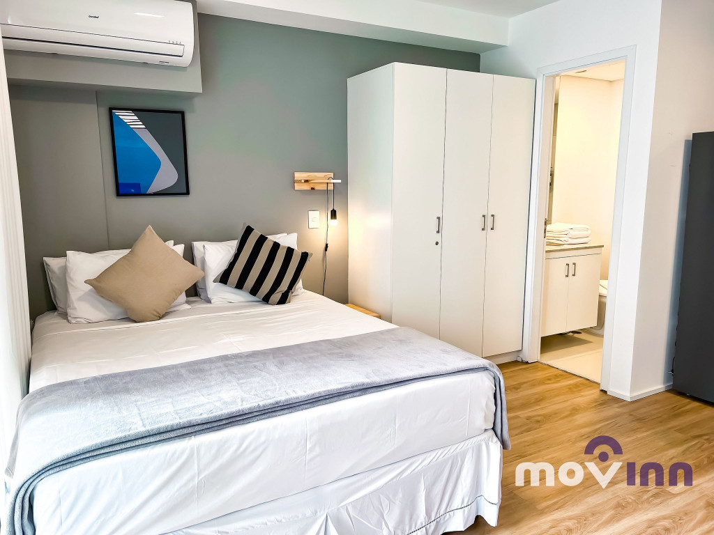 Com portaria 24 horas, o apartamento possui 30 m², recém reformados, com armários planejados em todos os ambientes, quarto com cama Queen Size e ar condicionado, Smart TV de 40’ com acesso WI-Fi, banheiro. A cozinha está totalmente equipada com geladeira, forno e cooktop, micro-ondas, cafeteira, sanduicheira e todos os utensílios necessários para a sua estadia.