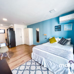 Com portaria 24 horas, o apartamento possui 30 m², recém reformados, com armários planejados em todos os ambientes, quarto com cama Queen Size e ar condicionado, Smart TV de 40’ com acesso WI-Fi, banheiro. A cozinha está totalmente equipada com geladeira, forno e cooktop, micro-ondas, cafeteira, sanduicheira e todos os utensílios necessários para a sua estadia.