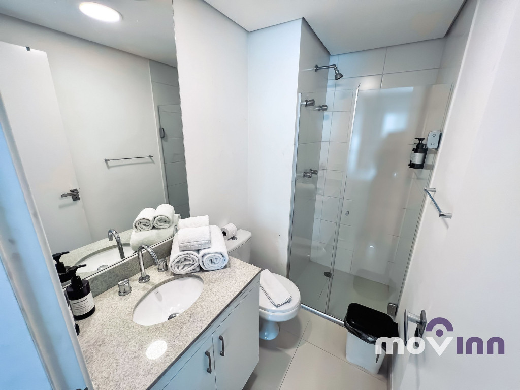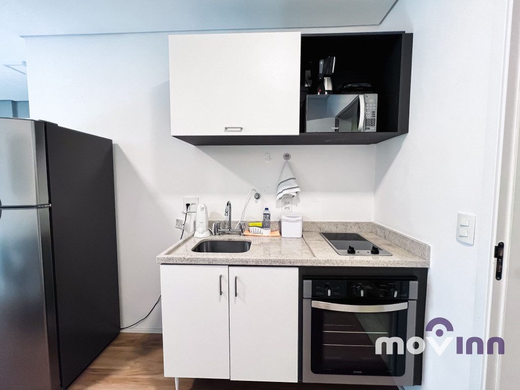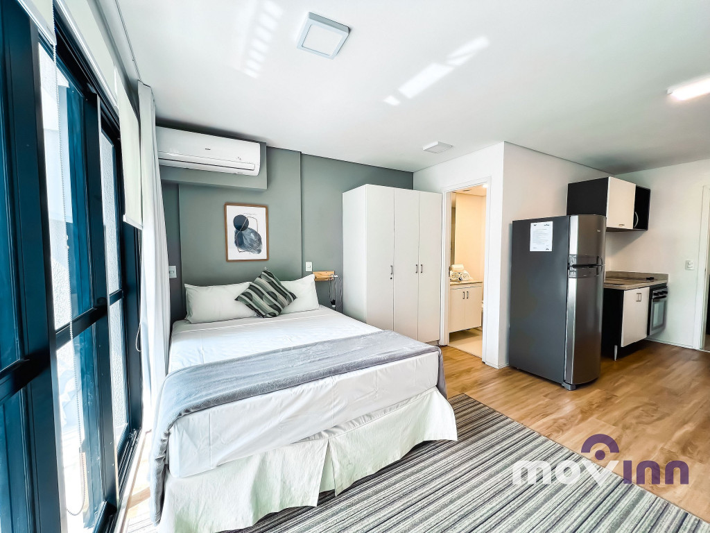Com portaria 24 horas, o apartamento possui 30 m², recém reformados, com armários planejados em todos os ambientes, quarto com cama Queen Size e ar condicionado, Smart TV de 40’ com acesso WI-Fi, banheiro. A cozinha está totalmente equipada com geladeira, forno e cooktop, micro-ondas, cafeteira, sanduicheira e todos os utensílios necessários para a sua estadia.