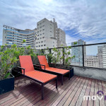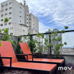 O apartamento possui terraço, Wi-Fi cortesia e uma vaga na garagem.