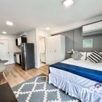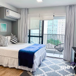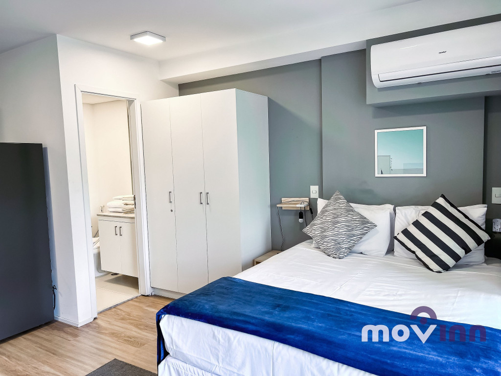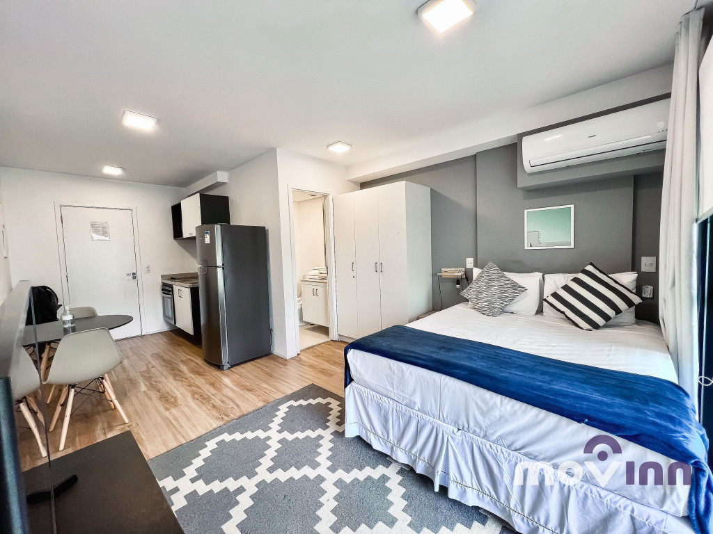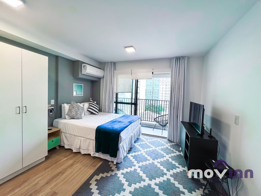 Com portaria 24 horas, o apartamento possui 30 m², recém reformados, com armários planejados em todos os ambientes, quarto com cama Queen Size e ar condicionado, Smart TV de 40’ com acesso WI-Fi, banheiro. A cozinha está totalmente equipada com geladeira, forno e cooktop, micro-ondas, cafeteira, sanduicheira e todos os utensílios necessários para a sua estadia.