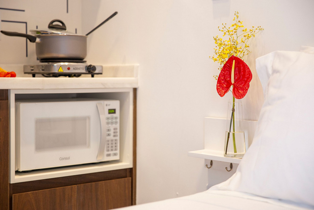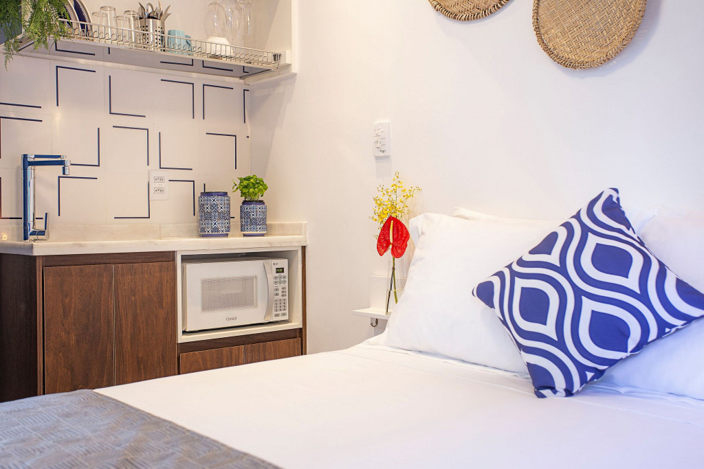 O charmoso studio de arquitetura grega está localizado em Higienópolis, bairro nobre no coração de SP, próximo do metro, restaurantes, mercados e lojas. Com um belo garden e agradável solarium, o edifício de atmosfera mediterrânea é um verdadeiro oásis na região central da cidade, trazendo uma experiência única. O studio conta com SmartTV, cozinha compacta e bem equipada, espaço de trabalho, internet ultra-veloz, ventilador de teto, cofre e deliciosa varanda, ideal para uma confortável estadia.