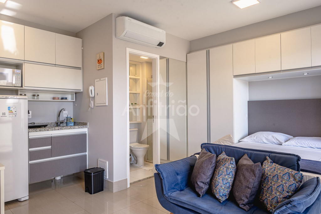 Studio completinho para até 2 pessoas com uma excelente área de lazer.