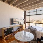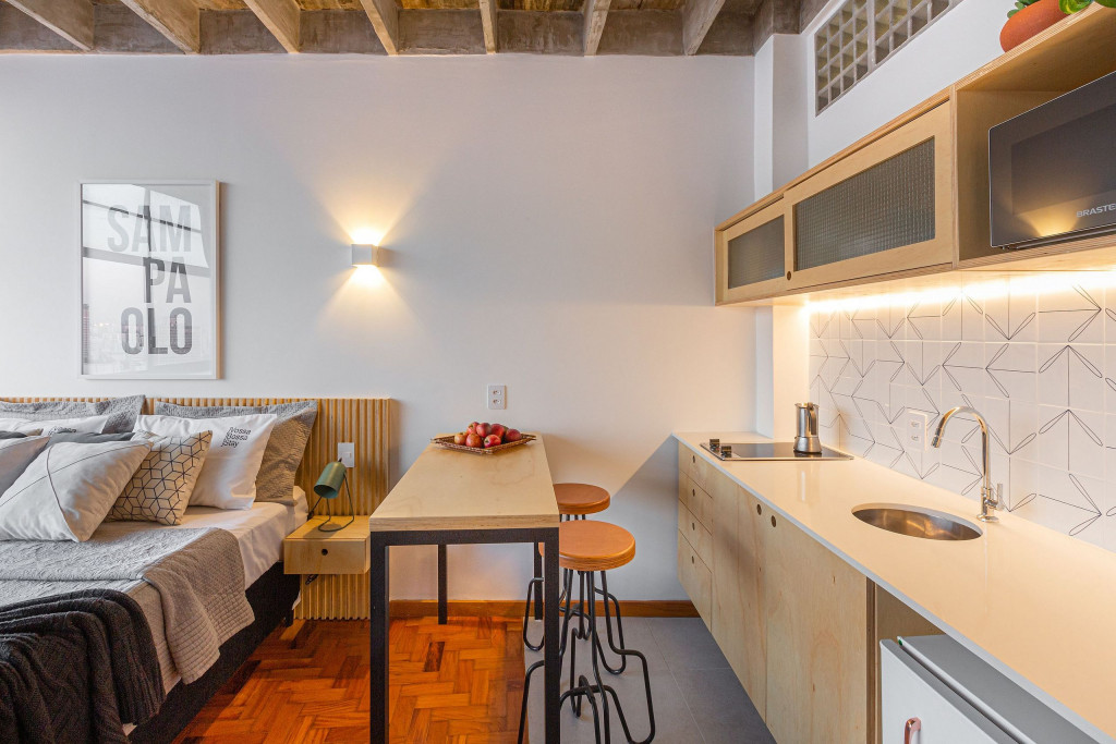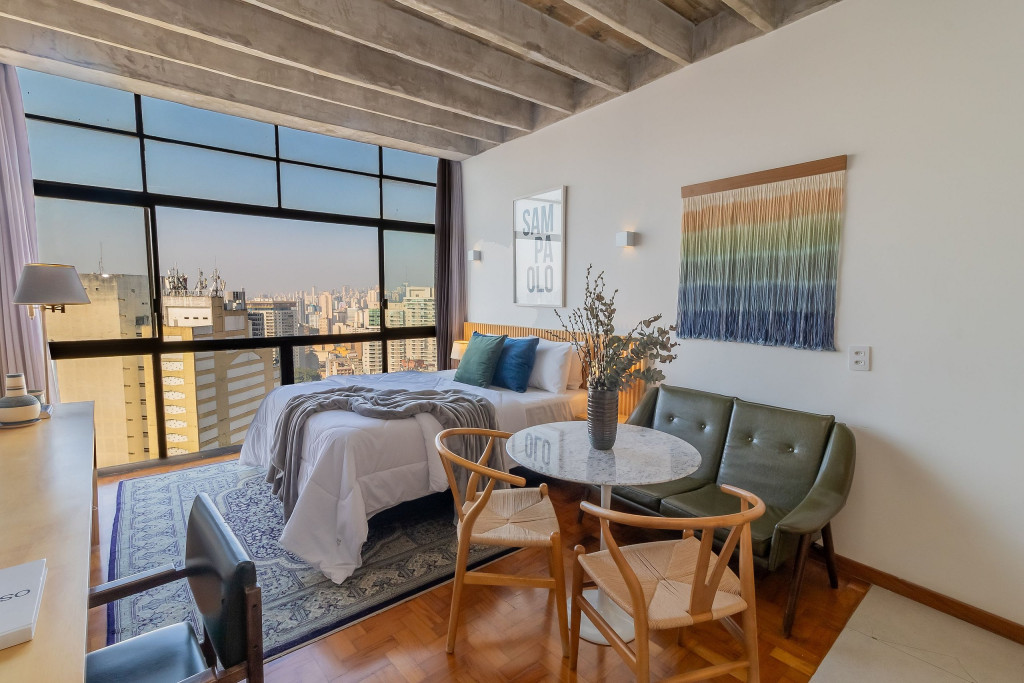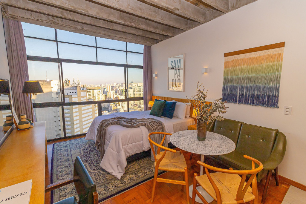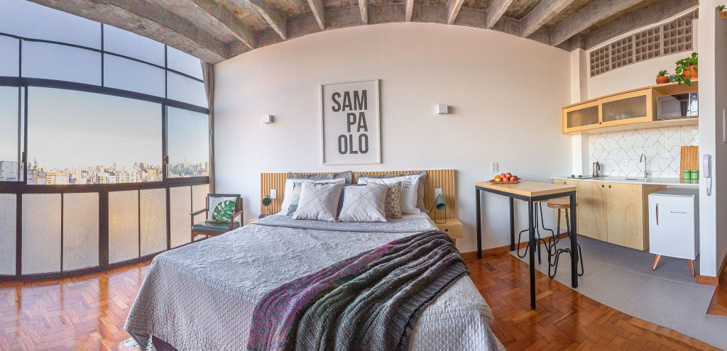 Estúdio projetado pela arquiteta Natasha Pirondi, onde tudo foi escolhido a dedo tentando preservar características de um dos ícones da arquitetura do país, o Edifício Copan, realizado por um dos maiores arquitetos brasileiros da história, o Oscar Niemeyer.