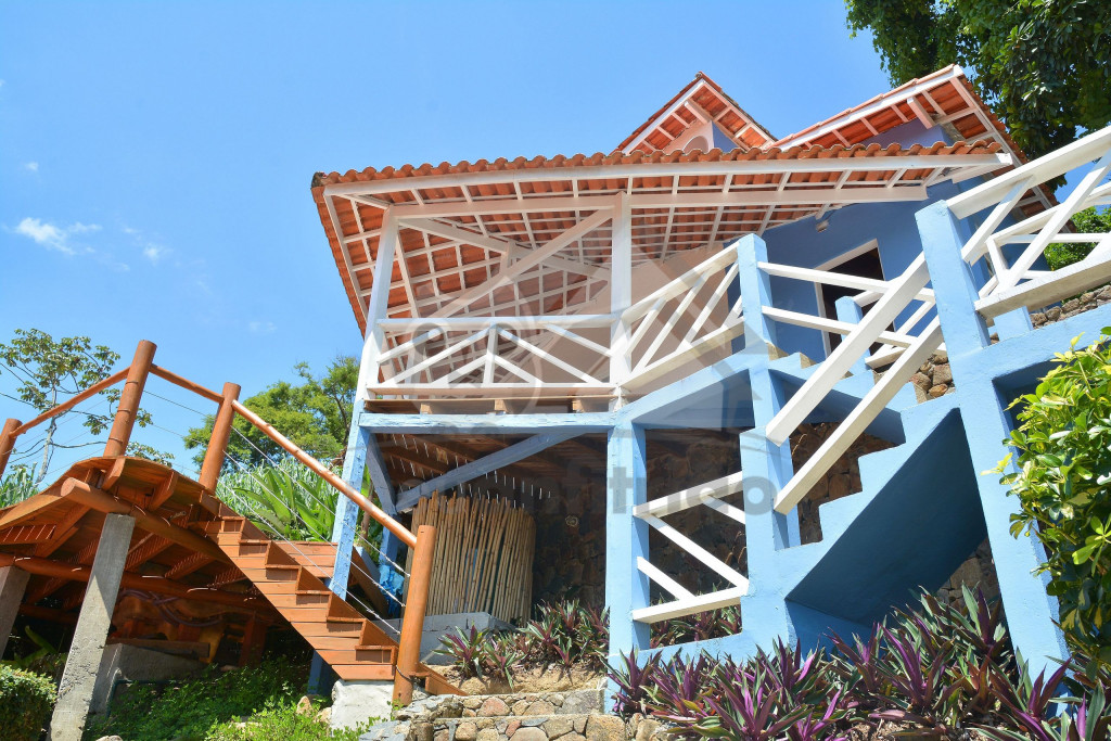 A propriedade possui duas casas, sendo que o nosso studio fica no alto do terreno, sendo necessário subir todos os lances de escada até chegar nele.