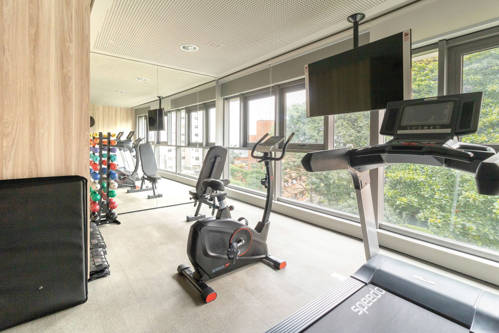 O condomínio também dispõe de academia e piscina na cobertura.