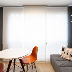 Para um ambiente mais aconchegante, contamos com cortina blackout na divisão do apartamento para a sacada.